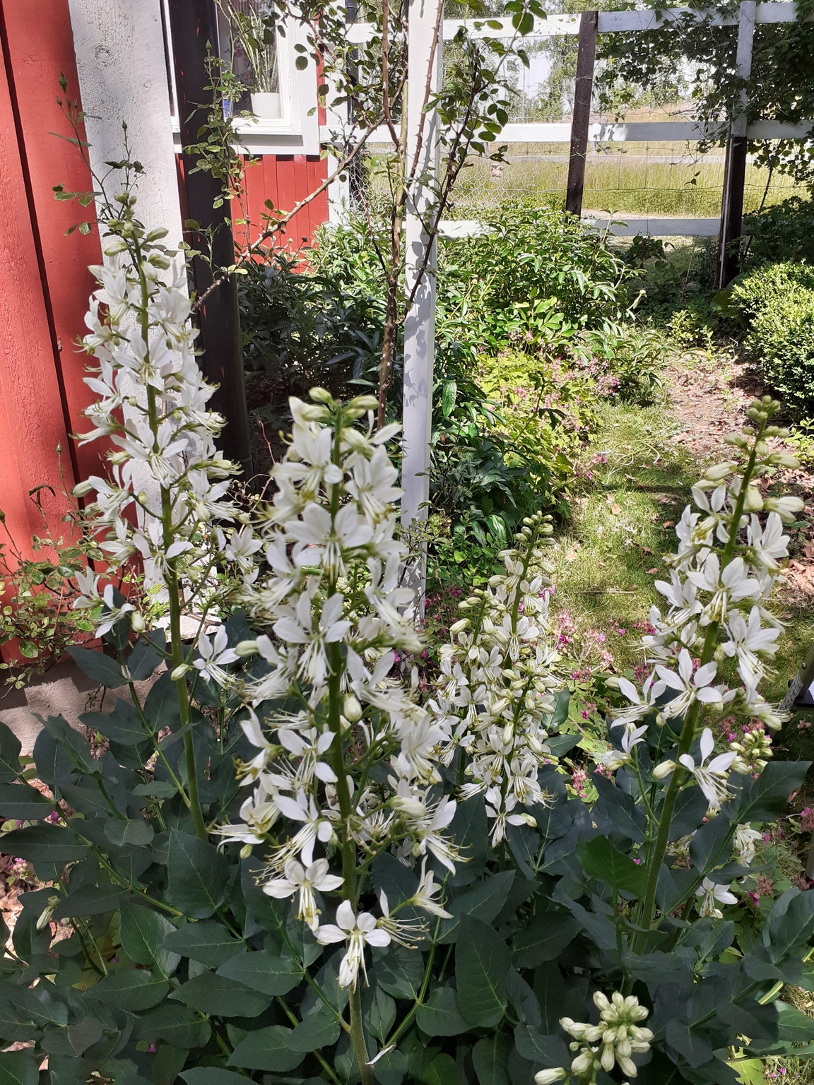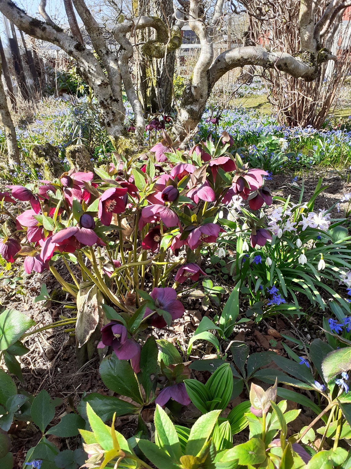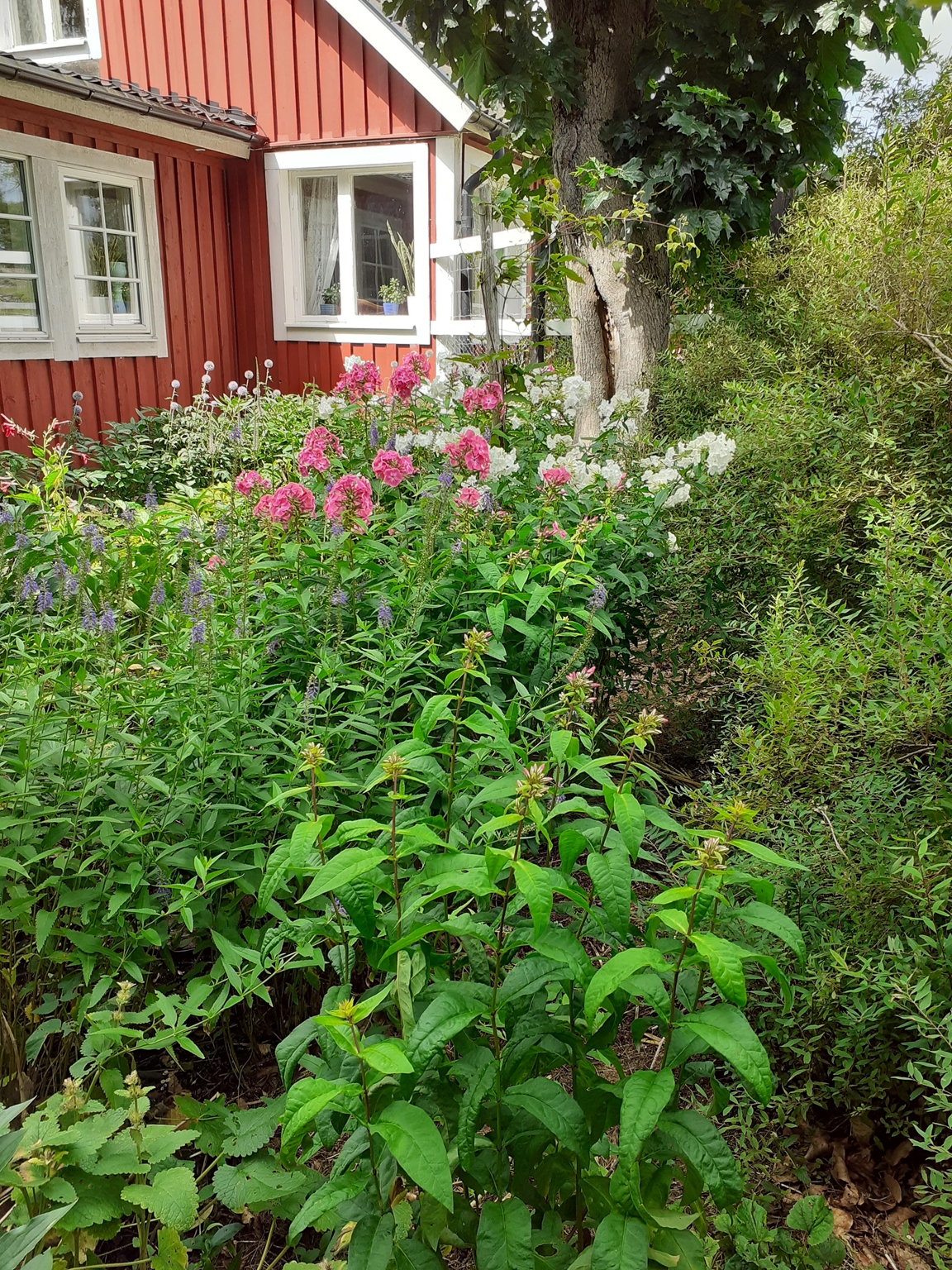 Vackert belägen trädgård i naturskön miljö nära sjö med två öar. Här finns sveriges äldsta och största äppelträd?? Ca sex meter högt, tuppen älskar att flyga upp i kronan. Här finns mkt träd och buskar, bla ett vanötsträd Perenna växter, kryddväxter, växthusmilj mm.