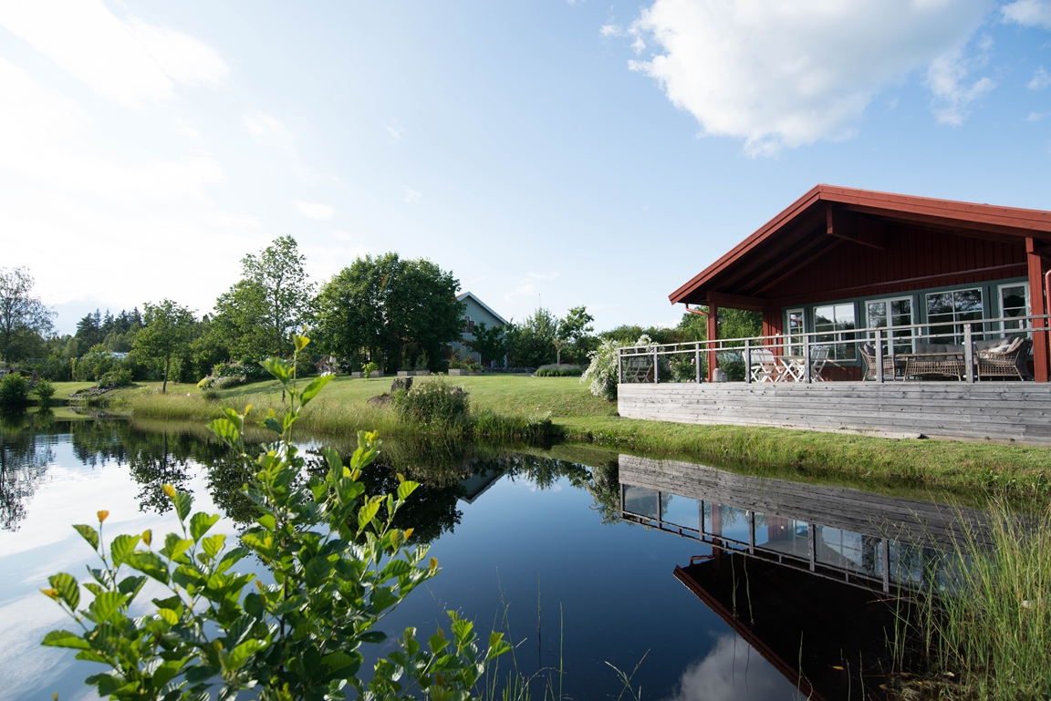 Vår trädgård pryds blandannat av en stor egengrävd damm. I dammen finns regnbågslax och kräftor, en liten båt och flytbrygga. vårt Gästhus Undantaget ligger precis bredvid dammen och ger en härlig utsikt från dess uteplats. Undantaget hyrs ut året runt och gäster från hela Europa hälsar på här.