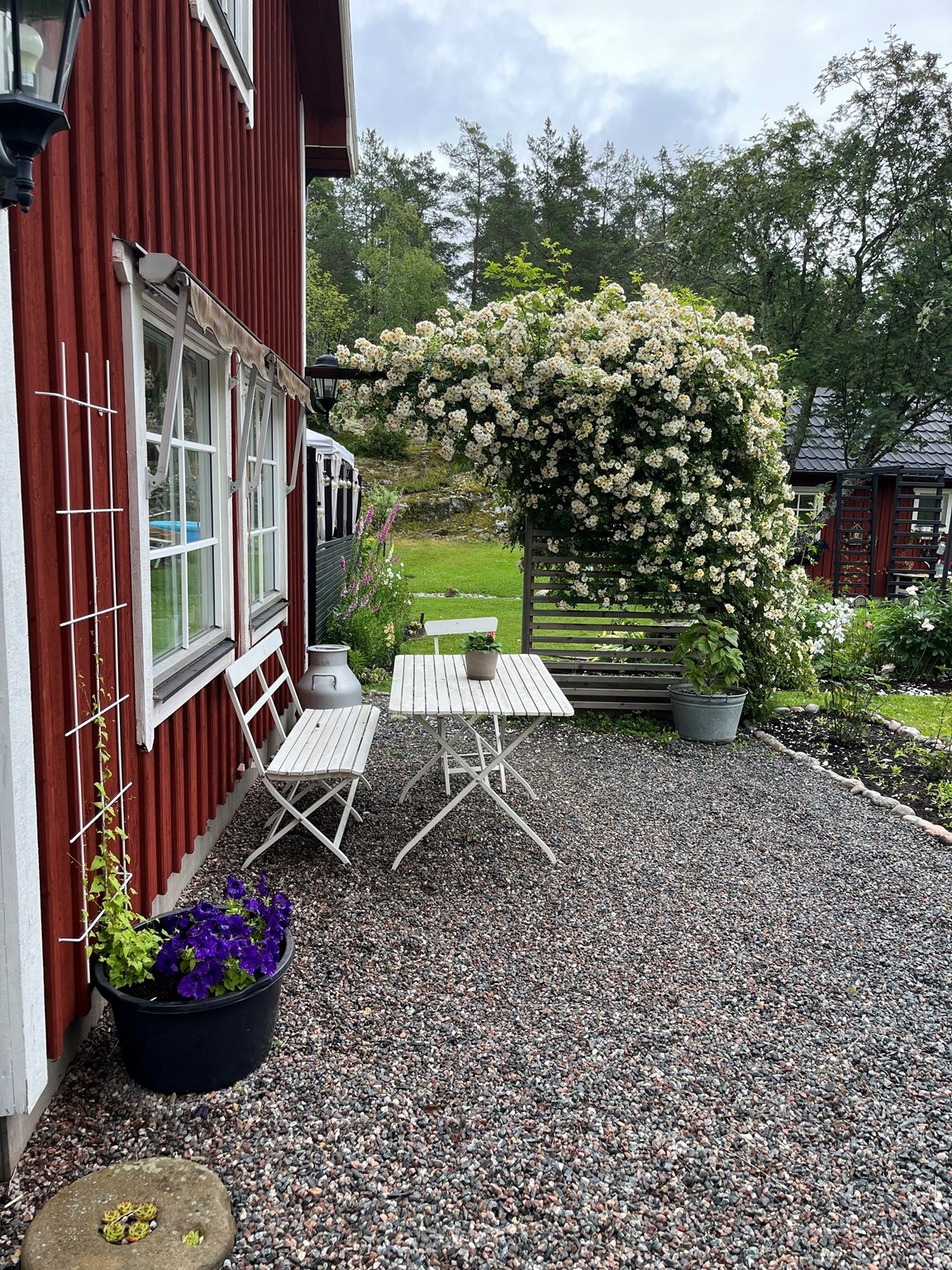Hundar får gärna vara kvar i bil alternativt bindas vid garage då vi har katter lösa på gården.