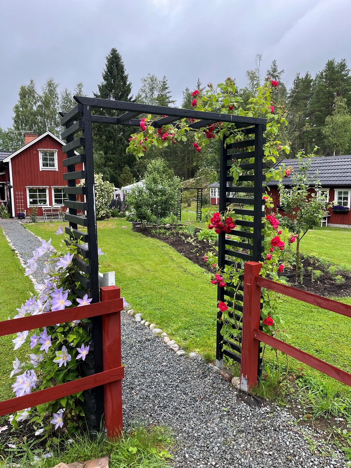 Nyboda är en "ung” trädgård som för 6 år sedan var enbart gräsmatta och vild äng. Nu är det en trädgård under uppbyggnad med många pågående projekt och trädgårdsrum. Här finns ett tunnelväxthus med tillhörande köksträdgård, en nyetablerad rosträdgård med 35 sorters rosor, en damm, uteplatser, en dry-creek (torr flodfåra), lusthus, dahliaodling, rabatter, frukt/bär-trädgård och ett påbörjat woodland.