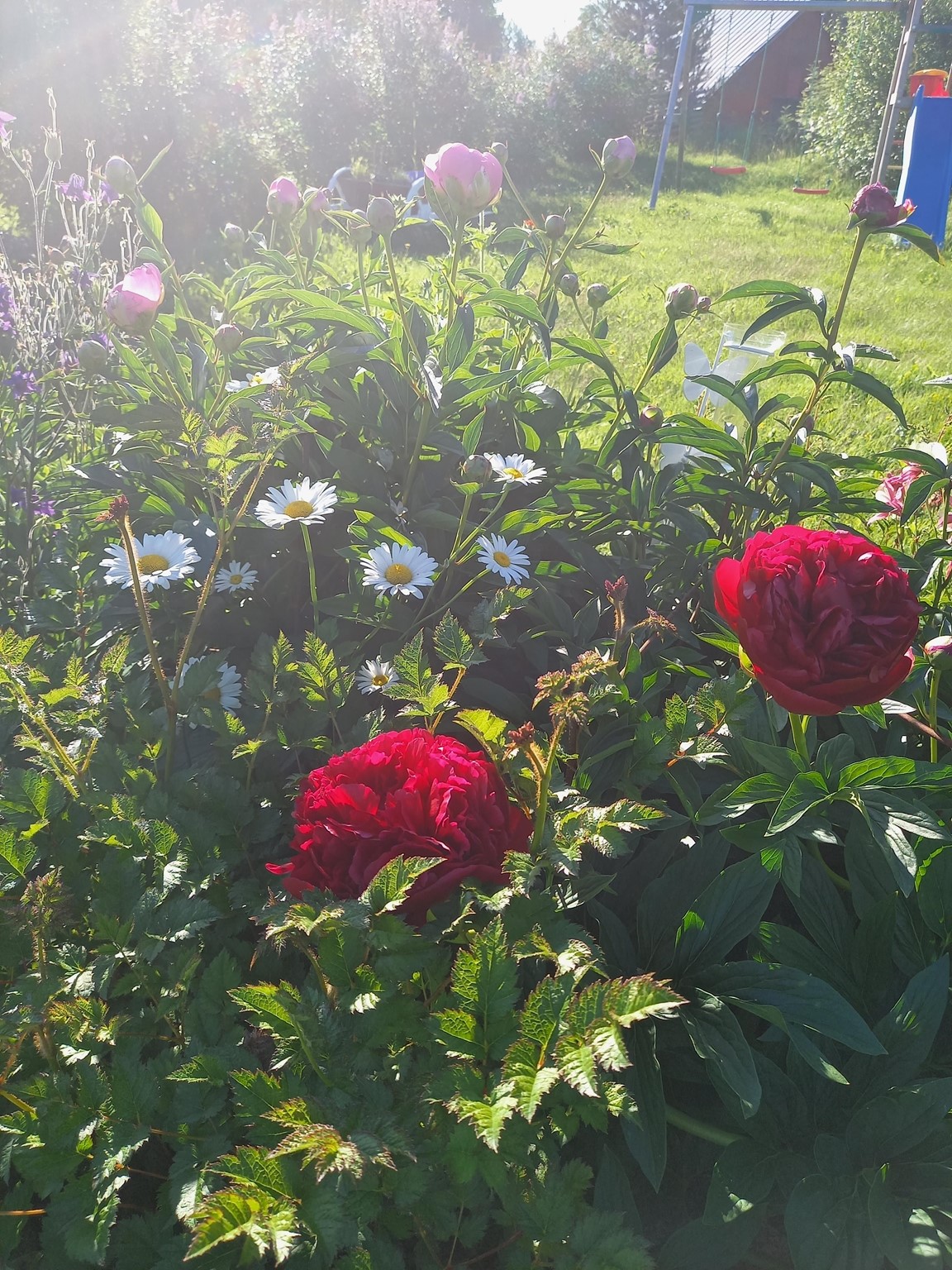 Trädgården är 100 % barntillåten med lek och bus. Studsmatta, lekstuga, gungor m.m finns.