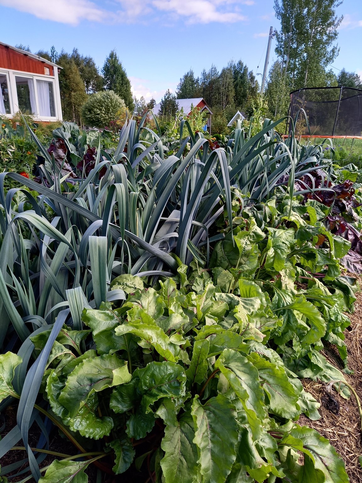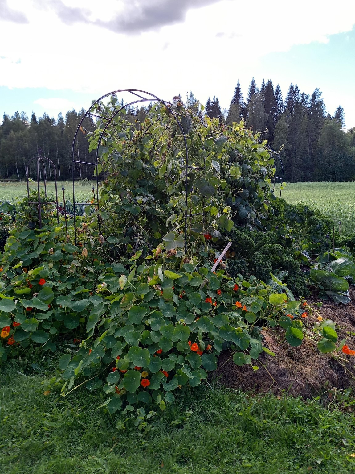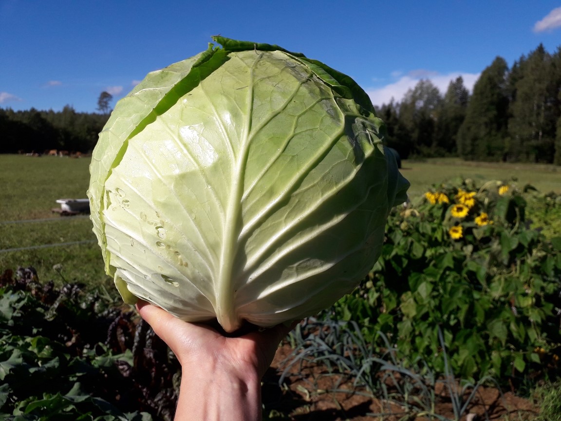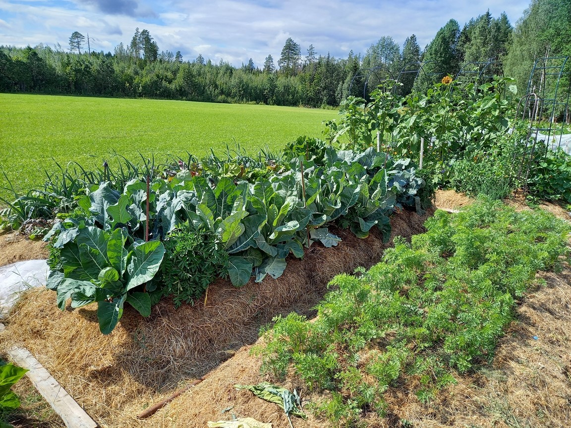 På gården odlar vi ekologiska grönsaker för självhushållning och även för försäljning i mindre skala. Odlingarna sker i upphöjda bäddar med täckodling. Bland alla grönsaker sår vi sommarblommor för att måna om fjärilar, humlor och andra pollinatörer. Vi vattnar med regnvatten insamlat från vårt hus- och ladugårdstak. Gödsel och täckmaterial kommer från vår KRAV-certifierade mjölkgård.