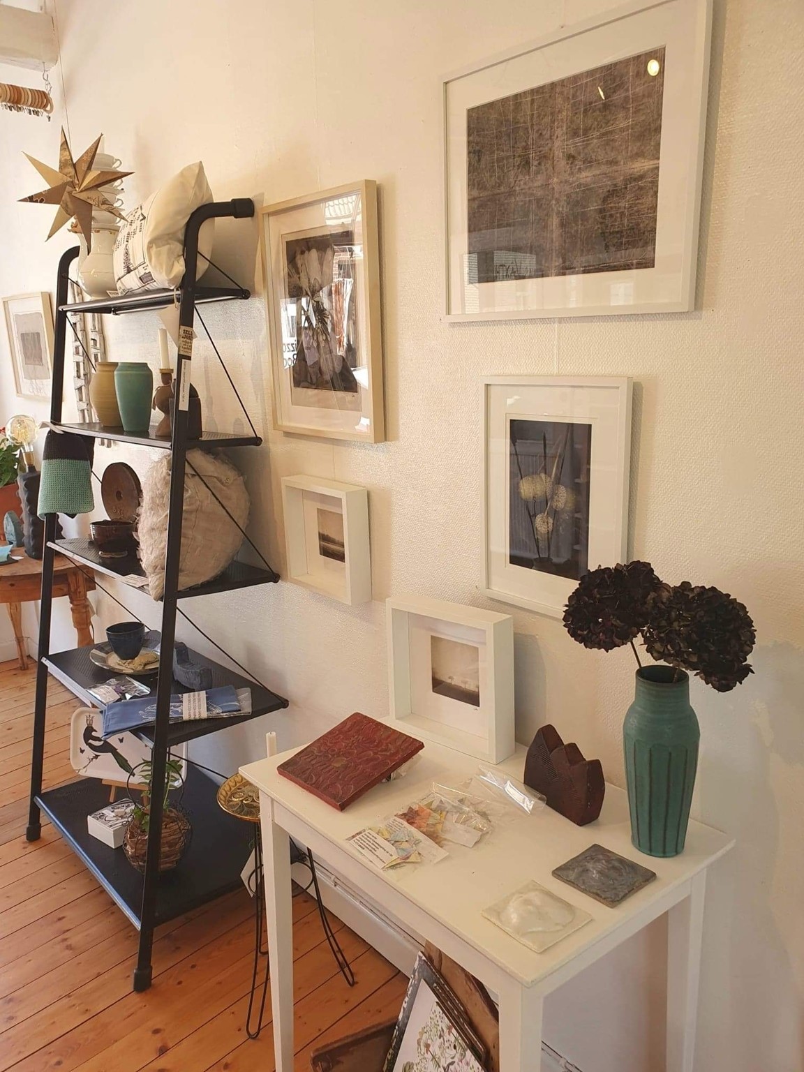 13 konstnärer/konsthantverkare finns representerade här. Keramik, design, silversmide, grafik, fotoart, smide, återbrukskonst, papperskonst, luffarslöjd, textil. Butiken är öppen under dagen.