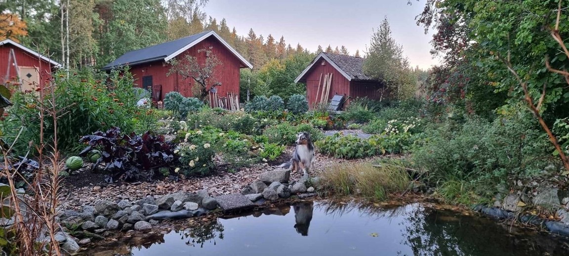 Biologisk mångfald, hållbart och långsiktigt är våra ledord och vi inspireras mycket av permakultur. Här på gården kan du bland annat se
