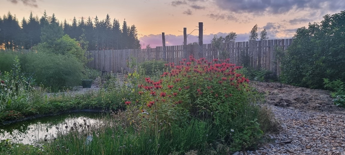 På gården har vi anlagt flera regnvattendammar och vi har ett löpande projekt på gården som heter ”Hur stor biologisk mångfald kan två biologer skapa på 4,5 ha mark?”