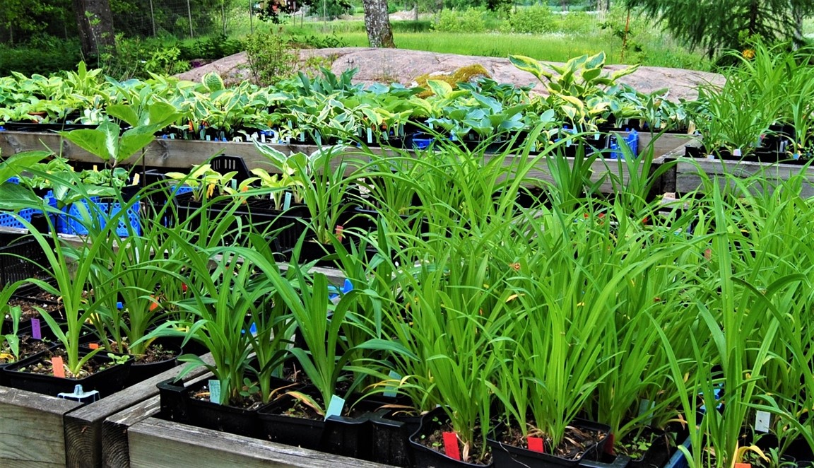 Växter till salu från sådder och delningar plus ca. 100 olika Hemerocallis/Dagliljor och ca. 100 olika Hosta/Funkia.
