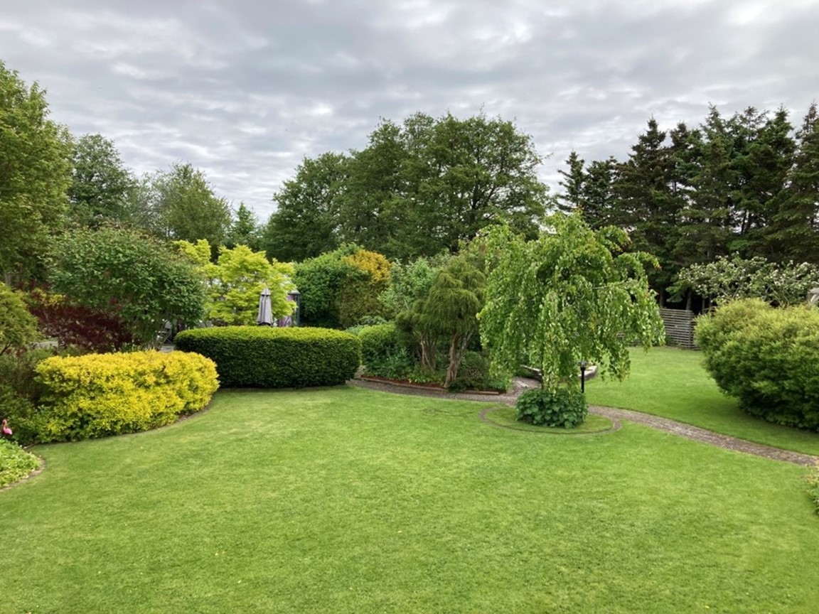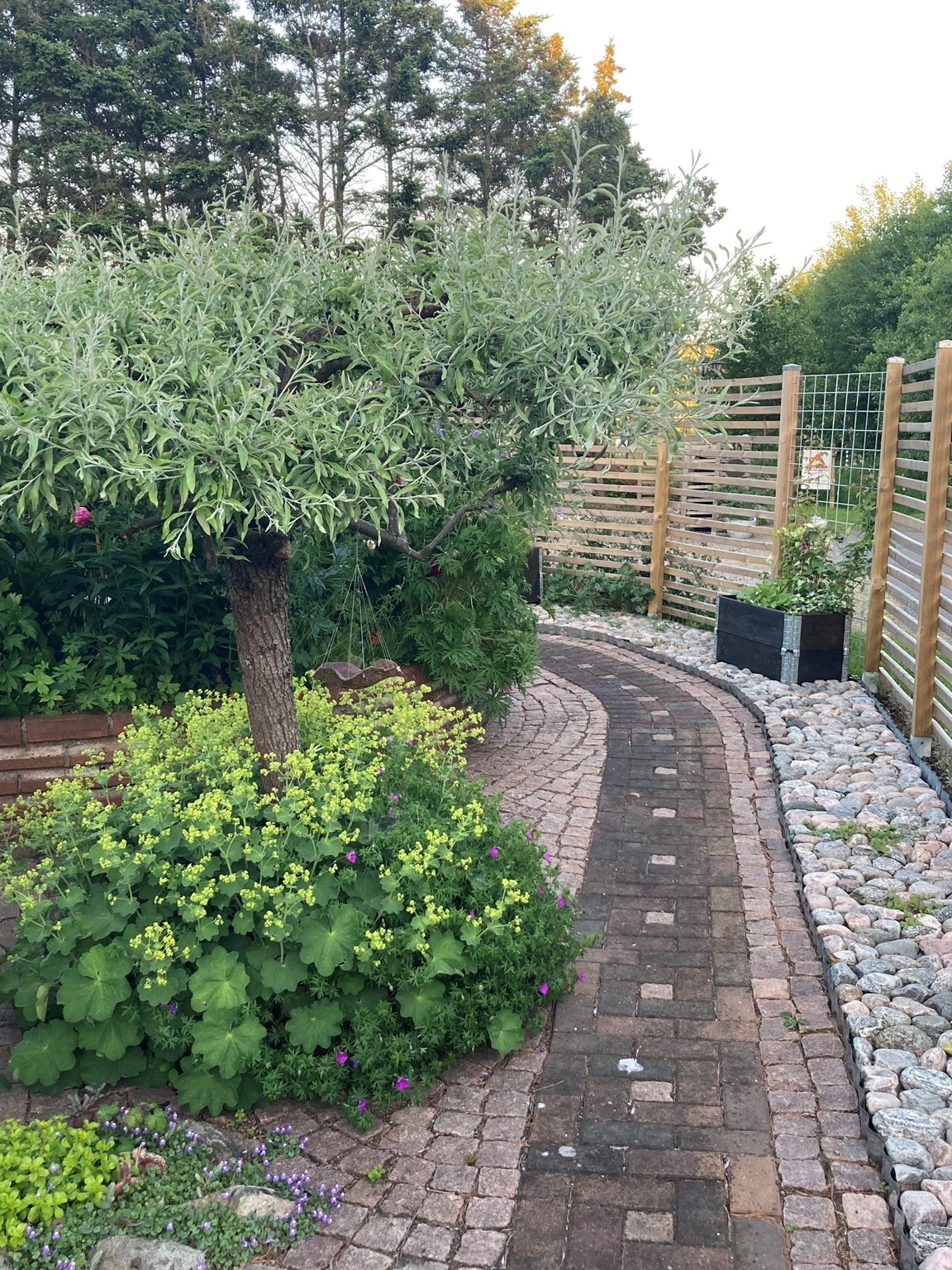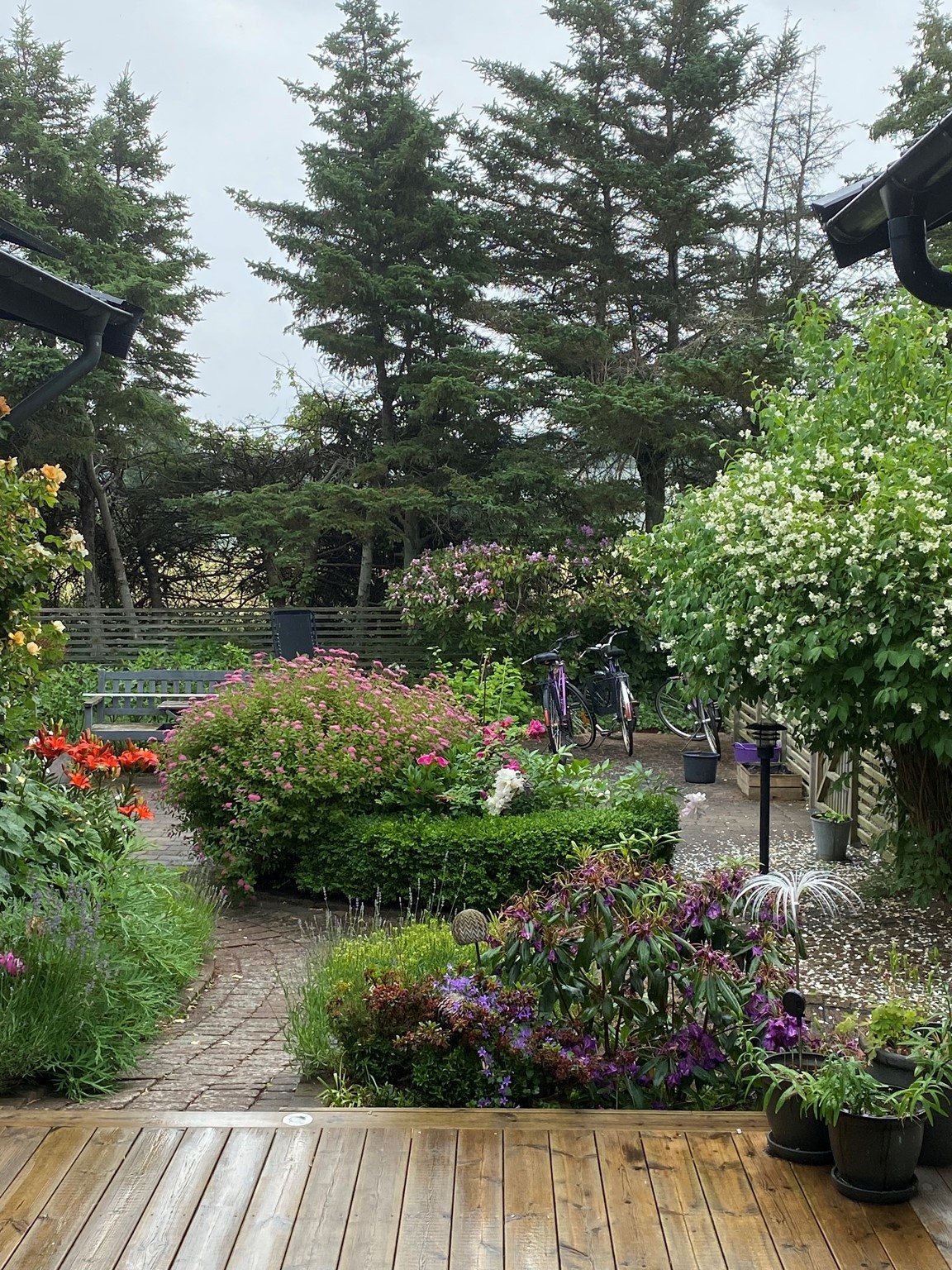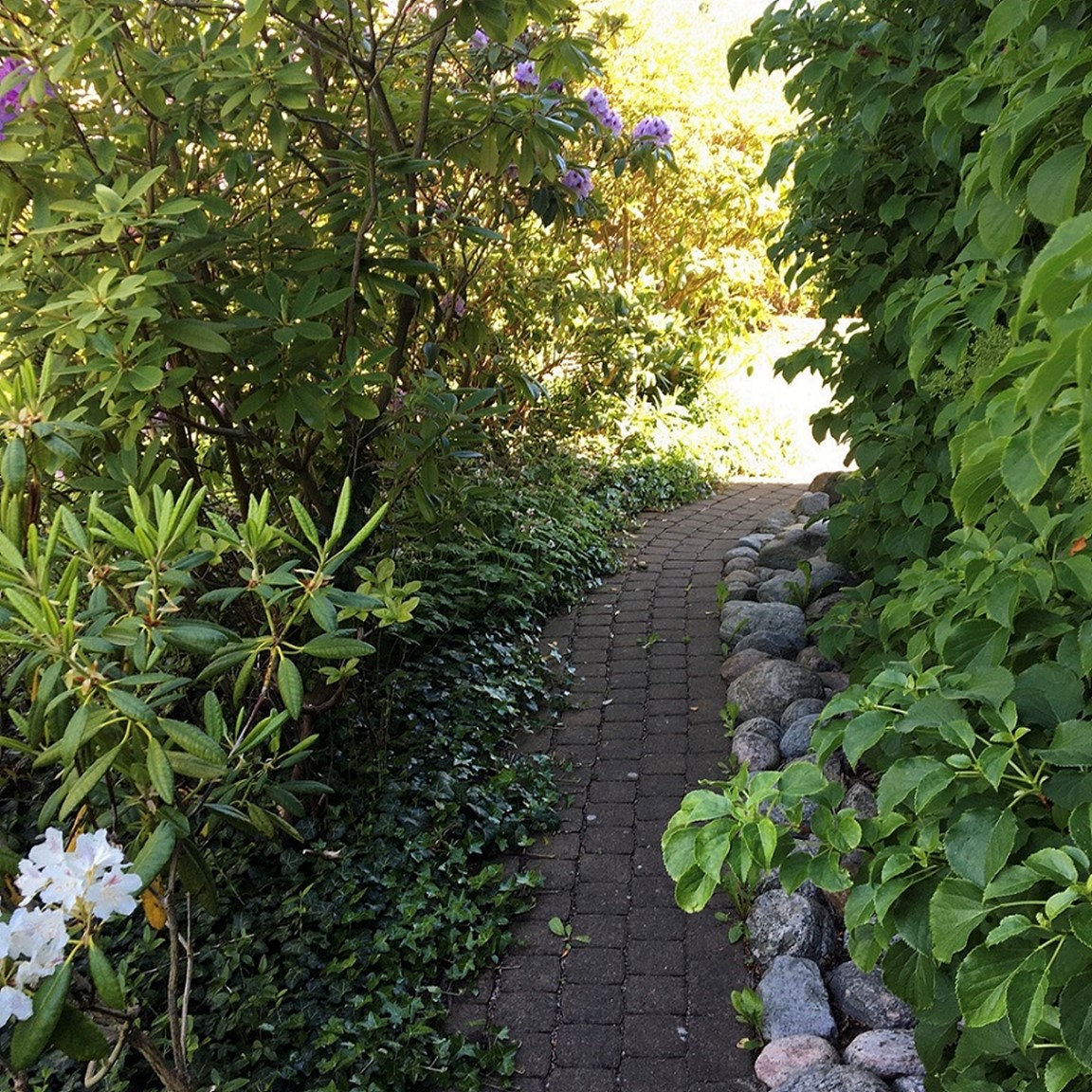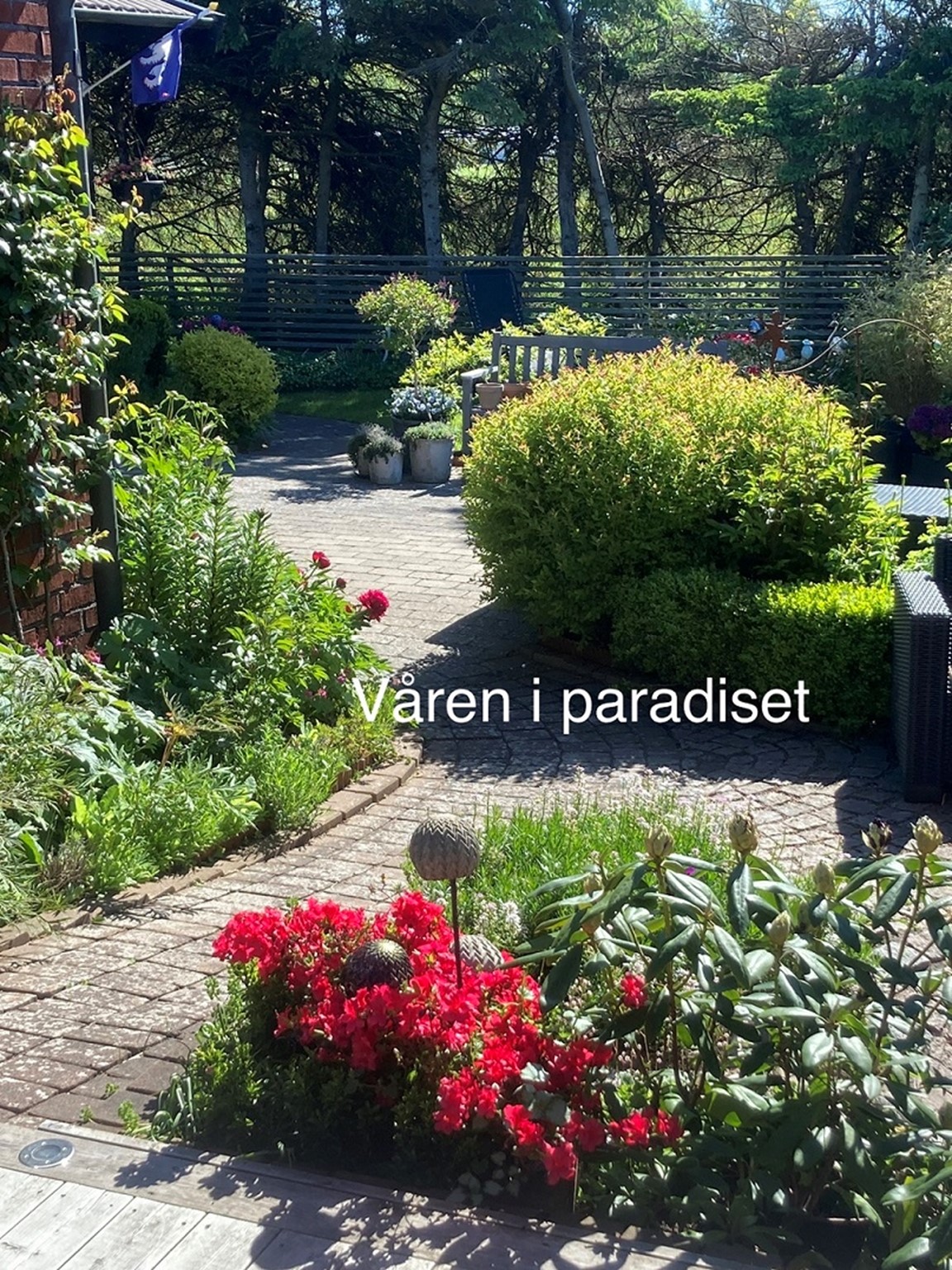 Längst in på Paradisets väg ligger vår underbara trädgård Trädgården är skapad av en kvinna vid namn Majlis som bodde här för 40 år sedan. Trädgården ligger skyddad från vind och salt från havet. Stenlagda gångar i olika mönster och stilar bildar naturliga ”vägar” att gå på upptäcksfärd i den ca 1700 m2 stora trädgården. Olika sorters magnolior bildar fond vid vår vackra damm. I dammen finns det guldfisk, salamandrar, grodor, paddor, märkliga platta snäckor och en massa andra små vattenlevande djur. Dammen är välbesökt av fåglar som vill bada och dricka när det är varmt. Vid dammen växer ett stort och märkligt träd som jag tror är en vitstrimmig kinesisk lönn. Under detta underbara träd kan jag söka skugga och ligga på min vilstol och bara titta upp i bladverket och på himlen. Vid dammen ligger mitt växthus som jag mest använder till att vila i och varifrån jag kan njuta av en underbar utsikt över denna speciella del av trädgården. Mitt växthus är inte som andras växthus, där har jag en säng i vilken jag vilar i samt tänker ut vad jag ska göra härnäst. Min make säger att det är en "pensionärskuvös" vilket han kan ha rätt i för där mår jag väldigt bra. Vid sidan av växthuset finns ett japanskt vattenfall som porlar och bildar en lugn och harmonisk stämning. Trädgården är stram och på ett vilsamt sätt helt underbar. Det finns inte så många arter av växter i trädgården, men de som finns hör ihop och bildar en enhetlighet som vi vill bevara. Trädgården har varit vår i 12 år och den var illa omhändertagen när vi köpte huset. Det är en utmaning att behålla det ursprungliga och samtidigt försöka att sätta vår egen prägel på den. Mycket finns kvar att göra men i vår trädgård är det mera lust än arbete som prioriteras. Vi hade många besökare förra omgången av tusen trädgårdar som verkligen uppskattade sitt besök i vår Trädgård. En del dröjde sig kvar och vandrade runt på egen hand, satte sig och lät intrycken smälta. Självklart kan ni ta med egen fika och välja en plats där ni vill slå er ner. Så välkomna till Paradisets lusträdgård önskar Barbro och Björn samt flat coated retriver hanen Zorro.