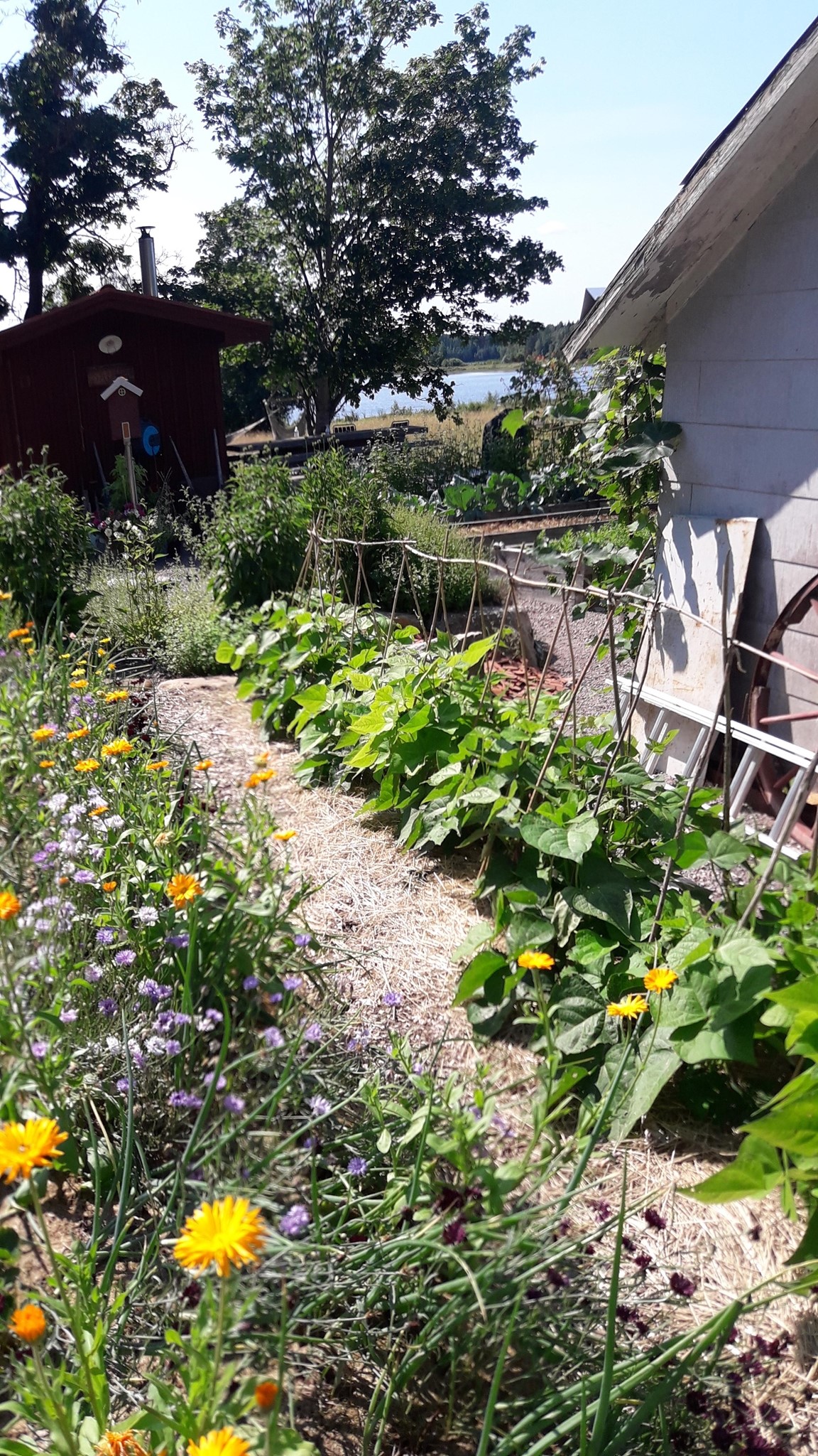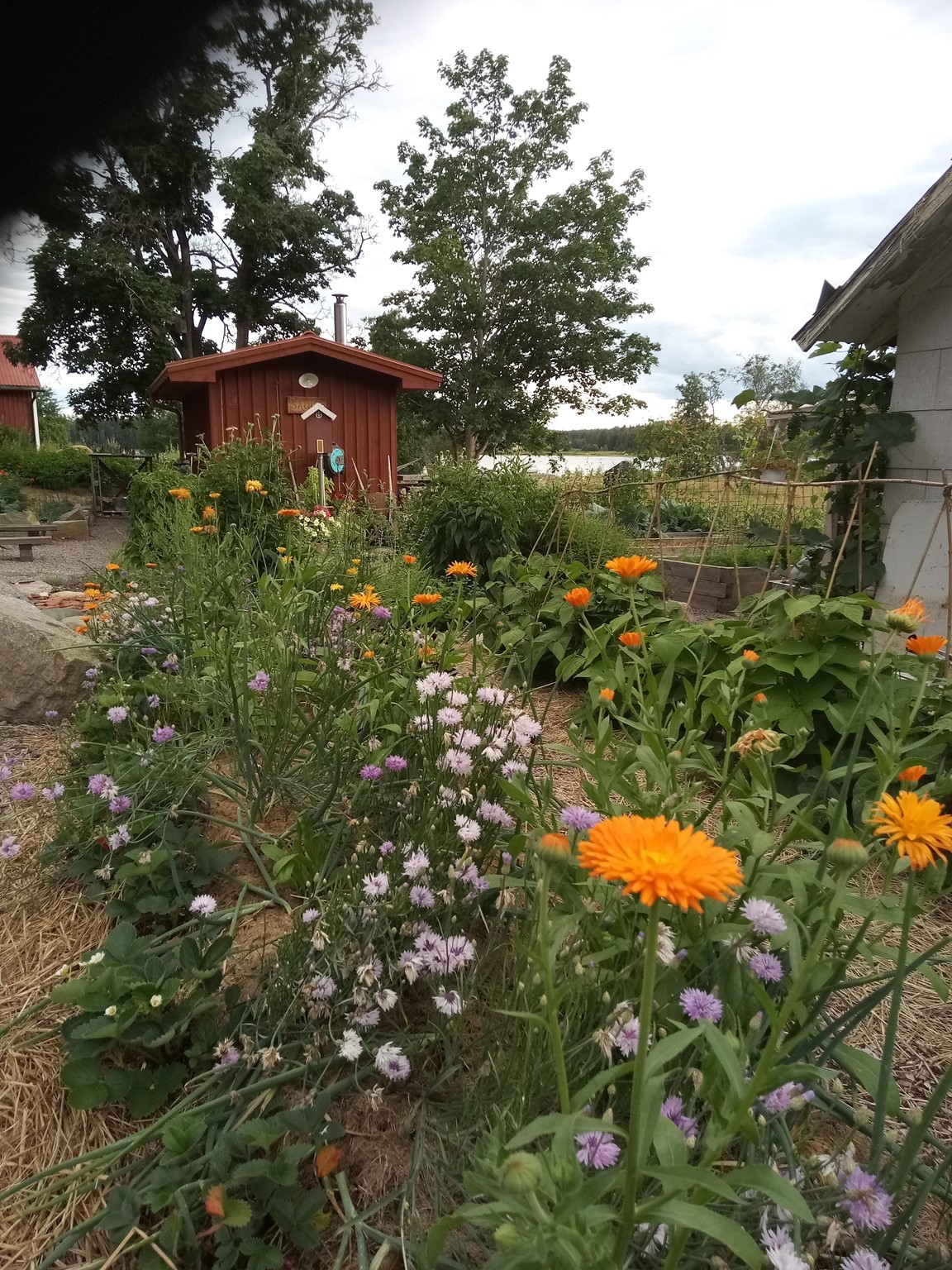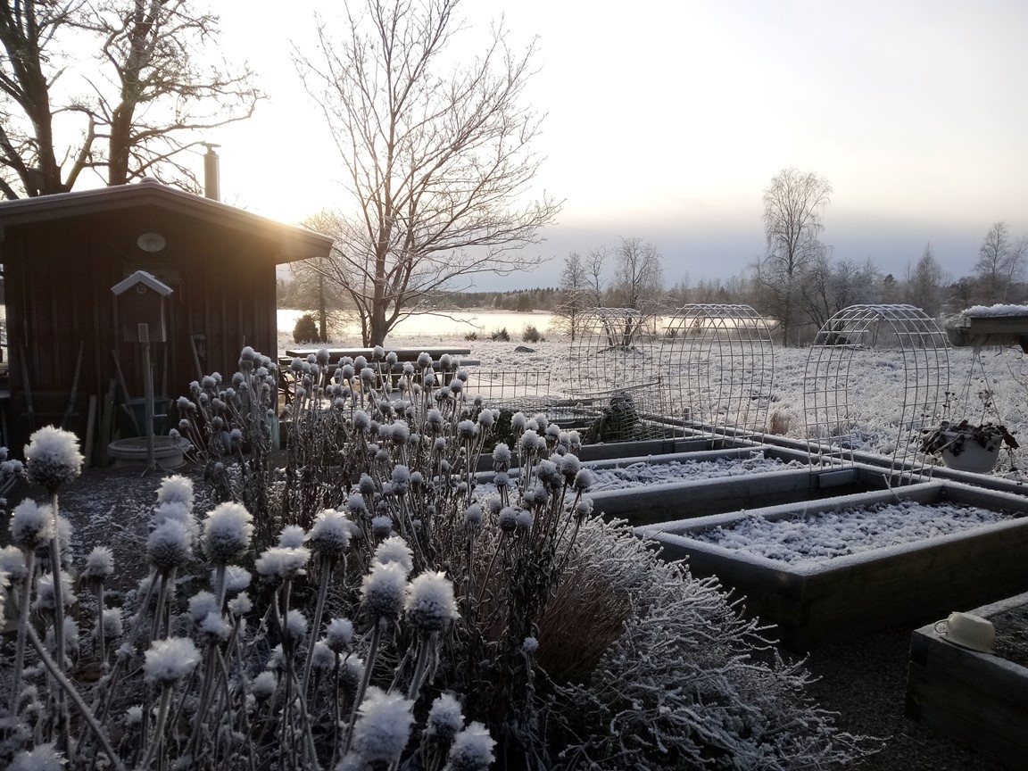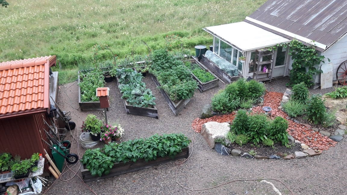 Välkommen till min pilgrimsträdgård! Här går hälsa och välmående först. Möts du av ogräs i gruset så är det för att stress och krav ska hållas på avstånd i mesta möjliga mån. Trädgården började så sakteliga växa fram kring det gamla missionshuset när vi flyttade hit 2017. Första sommaren inrättades små platser åt vart och ett av pilgrimsrörelsens nyckelord: Frihet, Enkelhet, Tystnad, Bekymmerslöshet, Långsamhet, Andlighet och Delande. Sedan dess har den utvidgats bit för bit och mest av allt har Delandets plats, köksträdgården, vuxit. Med inspiration från permakultur försöker jag hitta hållbara lösningar, odla ekologiskt, främja biologisk mångfald och välmående för både människor, djur och övrig natur.