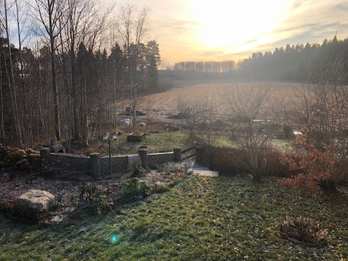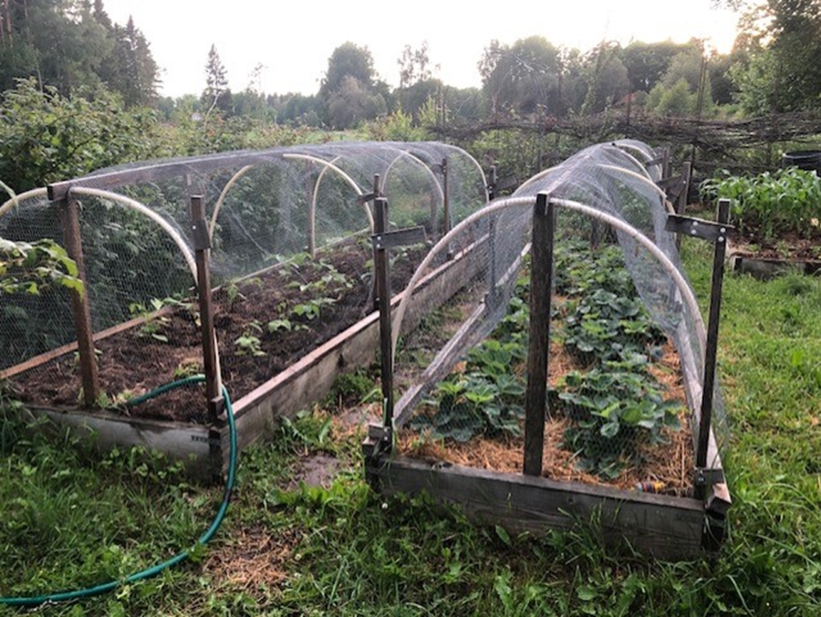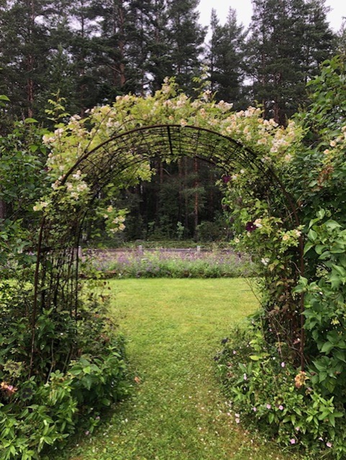 Trädgården är stor, ca 3000 m2. Den övre delen är på en grusås och den nedre delen på gammal åkermark. (Du behöver kunna gå i en backe alt. trappa för att se hela trädgården.) Jag började skapa trädgården för 14 år sedan. Med småbarn gick det sakta framåt. Den är inte klar, men jag har kommit en bra bit på väg. Bjuder in dig att se både fullföljda och planerade projekt. Du får en broschyr över trädgården när du kommer så det blir lättare att förstå vad du ser. Jag odlar helt ekologiskt med hjälp av kompost, hästgödsel, täckodling och i första hand med regnvatten. Att skapa en bra miljö för pollinatörer är en viktig del av trädgården. De sista två åren har vi låtit stora delar av gräsmattan bli äng och bara klippt gångar genom den. Även perenner och buskar är valda utifrån vad som är bra för insekterna. Trädgården har verkligen börjat bli ett skafferi. Vi är självförsörjande på potatis, vitlök, gul lök (stora delar av året), haricouvert och bär. Jordkällaren köpte vi för några år sedan. Den är tillverkad av elever på byggprogrammet i Sandviken. Perenner och snittblommor är också en viktig del av trädgården. Blommorna på altaret i Strömsbro kyrka kommer från min trädgård maj-okt. Jag försöker jobba enligt principen "göra saker ordentligt från början så blir det mer lättskött sen". Det betyder bl.a att jag lagt en hel del jobb på att överlista harar, rådjur och sorkar samt att skapa hyfsat billiga och smidiga bevattningssystem. Varmt välkommen!