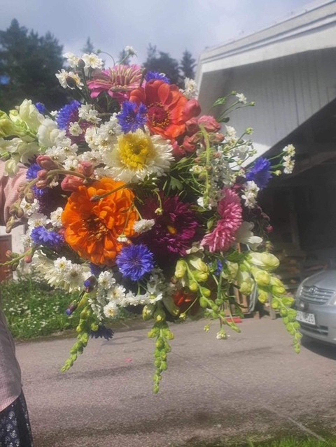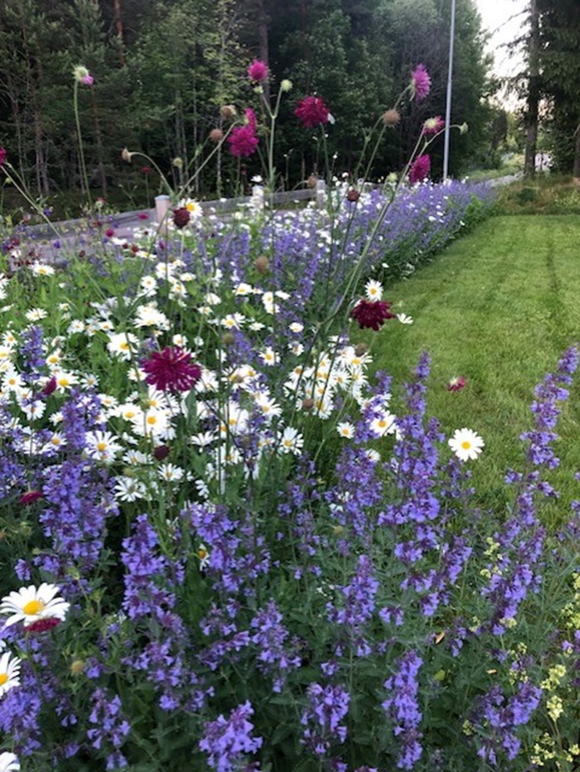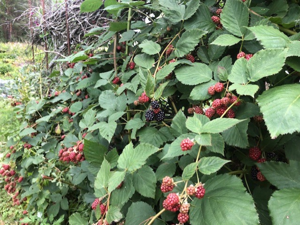 Trädgården är stor, ca 3000 m2. Den övre delen är på en grusås och den nedre delen på gammal åkermark. (Du behöver kunna gå i en backe alt. trappa för att se hela trädgården.) Jag började skapa trädgården för 14 år sedan. Med småbarn gick det sakta framåt. Den är inte klar, men jag har kommit en bra bit på väg. Bjuder in dig att se både fullföljda och planerade projekt. Du får en broschyr över trädgården när du kommer så det blir lättare att förstå vad du ser. Jag odlar helt ekologiskt med hjälp av kompost, hästgödsel, täckodling och i första hand med regnvatten. Att skapa en bra miljö för pollinatörer är en viktig del av trädgården. De sista två åren har vi låtit stora delar av gräsmattan bli äng och bara klippt gångar genom den. Även perenner och buskar är valda utifrån vad som är bra för insekterna. Trädgården har verkligen börjat bli ett skafferi. Vi är självförsörjande på potatis, vitlök, gul lök (stora delar av året), haricouvert och bär. Jordkällaren köpte vi för några år sedan. Den är tillverkad av elever på byggprogrammet i Sandviken. Perenner och snittblommor är också en viktig del av trädgården. Blommorna på altaret i Strömsbro kyrka kommer från min trädgård maj-okt. Jag försöker jobba enligt principen "göra saker ordentligt från början så blir det mer lättskött sen". Det betyder bl.a att jag lagt en hel del jobb på att överlista harar, rådjur och sorkar samt att skapa hyfsat billiga och smidiga bevattningssystem. Varmt välkommen!
