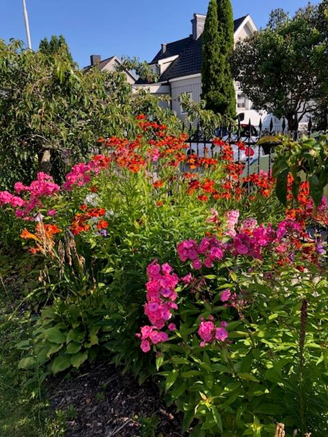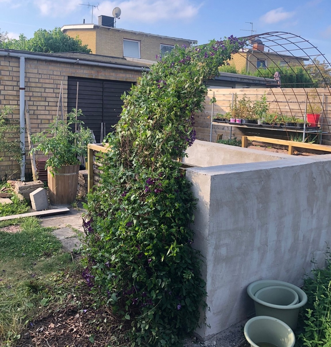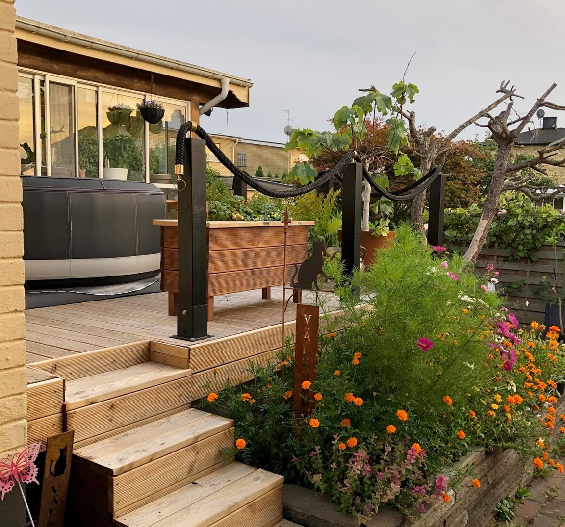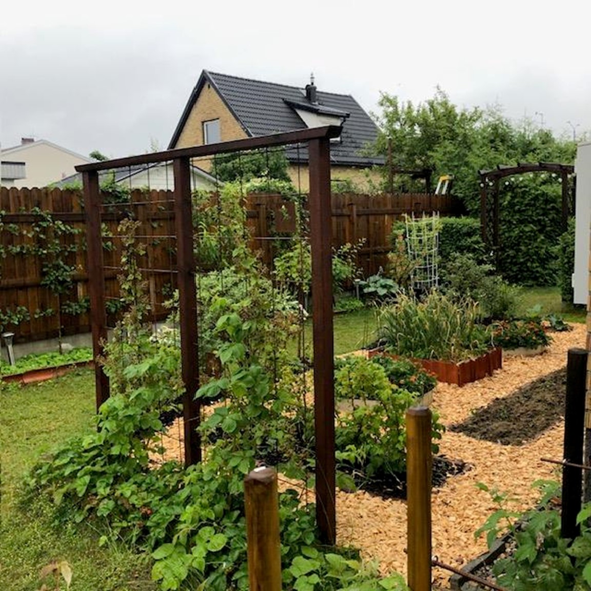 Vår villaträdgård i centrala Norrköping har en tomtyta på 840 kvm. Sedan vi flyttade in i huset har vi stegvis förändrat trädgården till en avkopplande, grönskande oas där odlingsland varvas med en del rabatter. Hemodlat är godast och i synnerhet tomater. Det blir det minst 150 plantor av varje år. Trädgården rymmer även flertalet fruktträd och bärbuskar. För att få plats med så mycket som möjligt arbetar vi en hel del med samplantering samt försöker hitta lösningar för att minska behovet av att vattna ofta. På senare år har det tillkommit ett växthus, vi har frigjort mer odlingsyta genom att byta ut häckar som blivit orimligt breda samt byggt ny kompost, möjligen den snyggaste sådan i Norrköping.