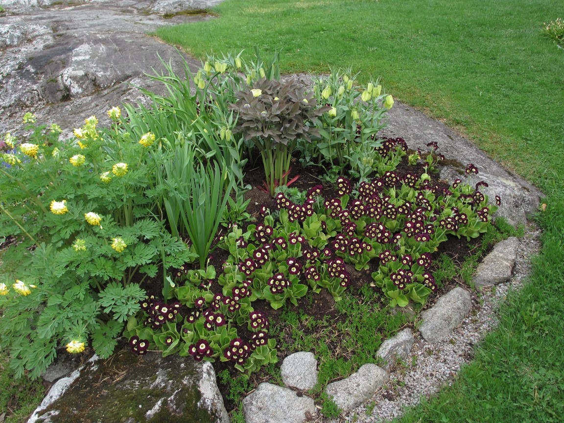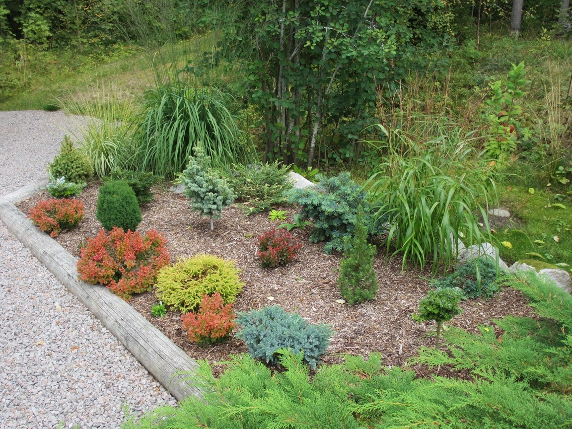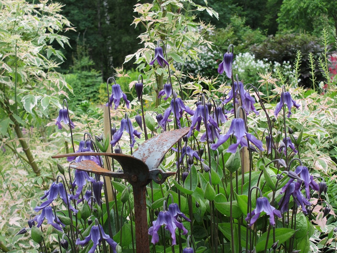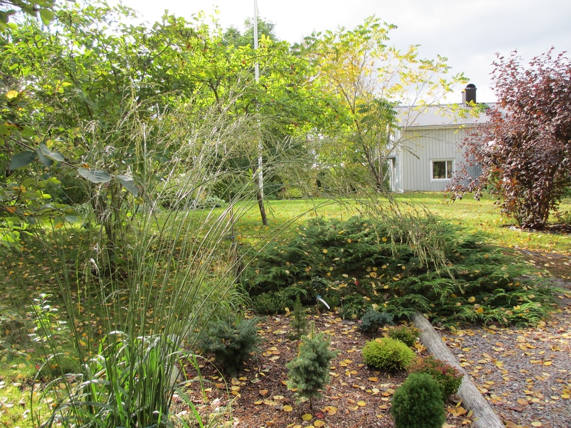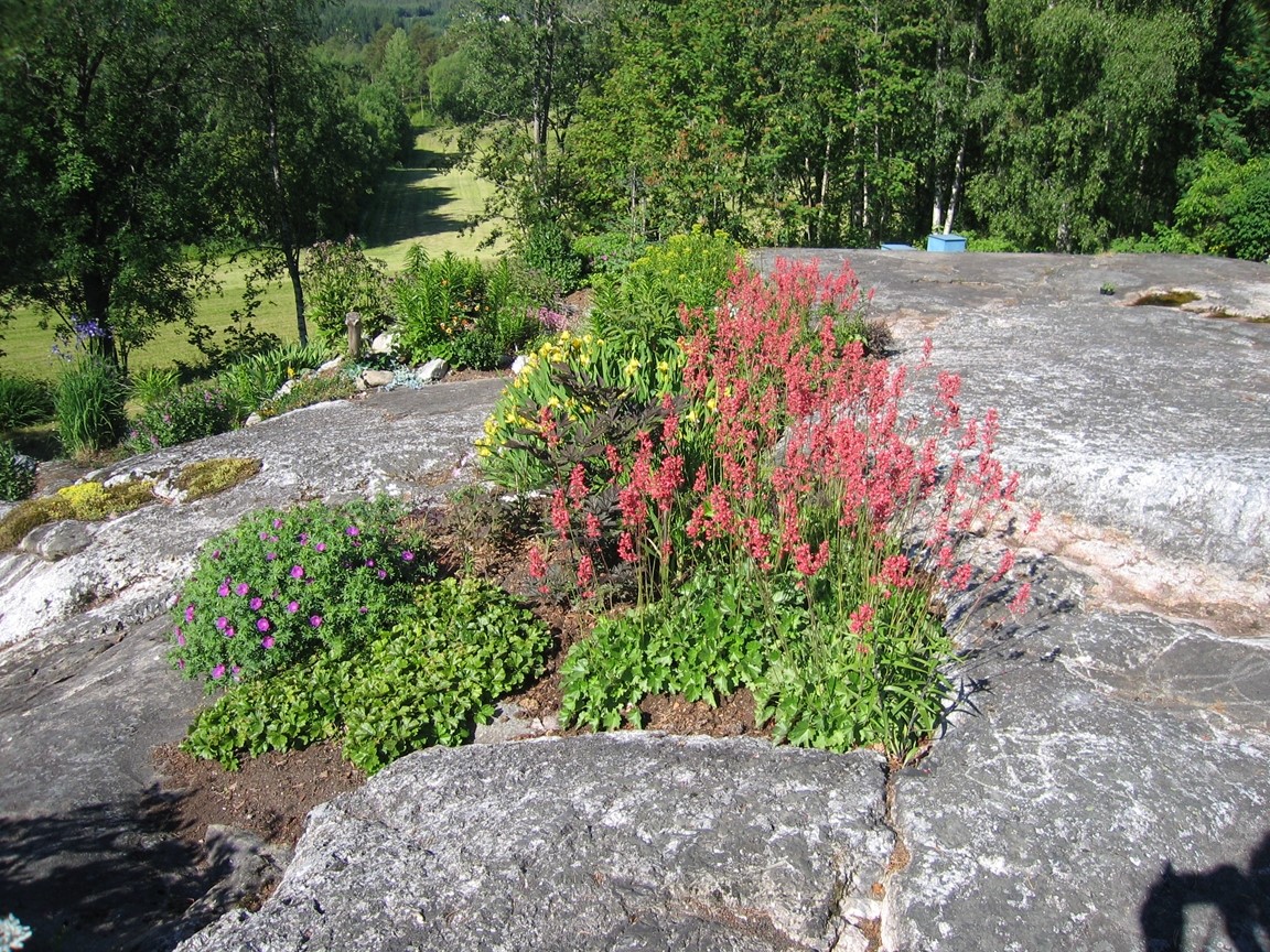 Vår trädgård består av skiftande naturtyper med bland annat berg i dagen. Vi har ett stort urval av träd/fruktträd och buskar samt perenner i mångfald. Vidare har vi ett 20-tal storblommiga klematis.