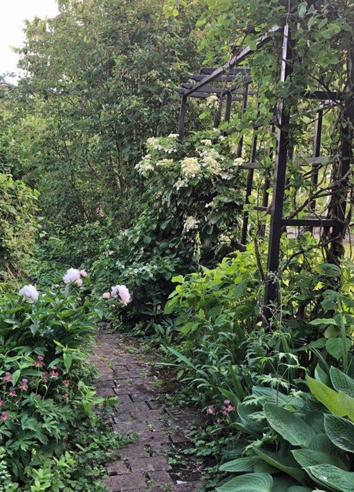 En ganska liten trädgård med biologisk mångfald. fruktträd, bärbuskar, prydnadsbuskar, rosor, andra klängväxter, smultron i mängder samt en stor mängd perenner. Tomten är delvis terrasserad och indelad i några olika rum.