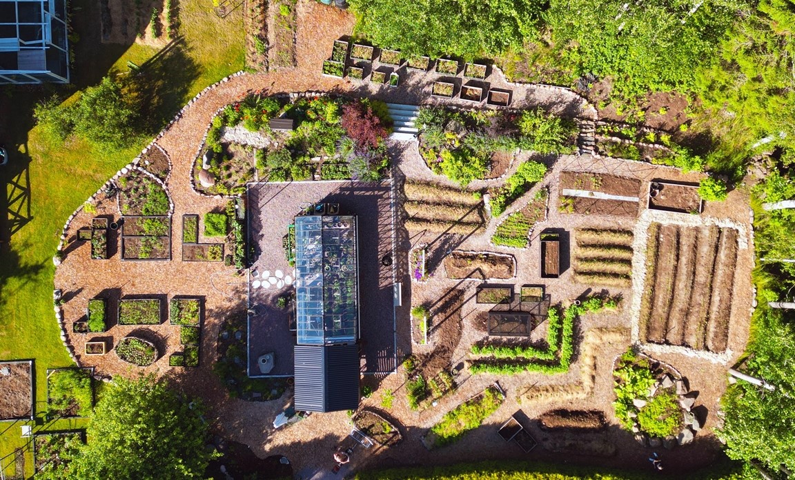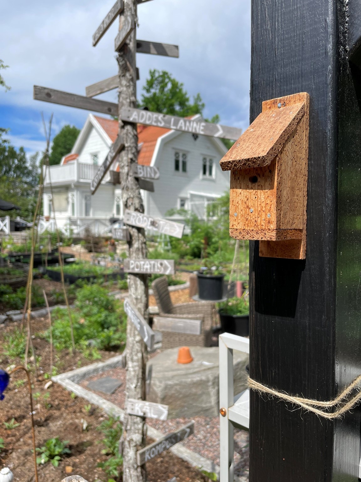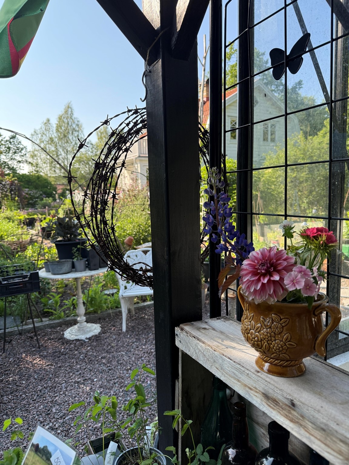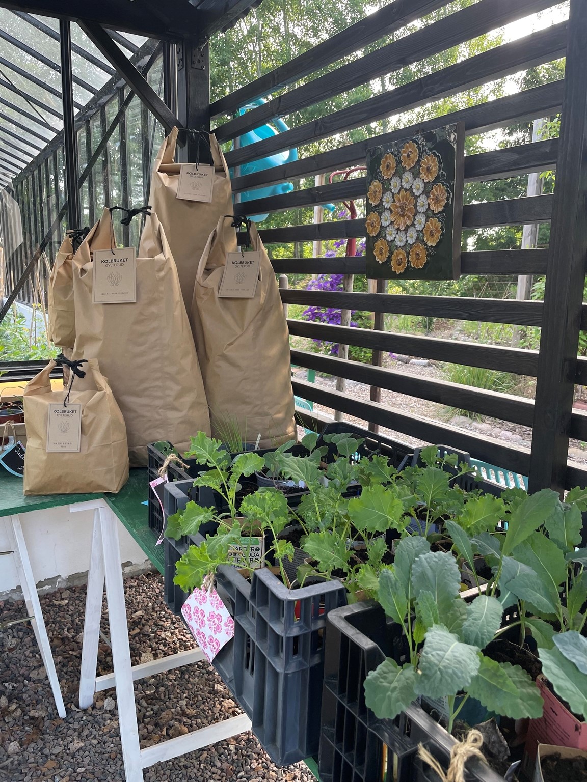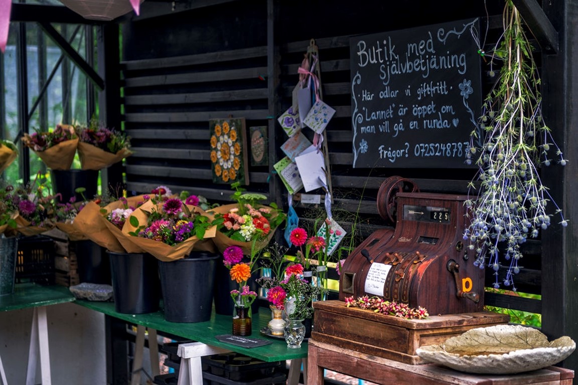 Liten butik i vår villaträdgård där vi säljer grönsaker, plantor och blommor. "Lannet" anlagt 2018 och rymmer nu mat, trädgårdsdekorationer, blommor och bin.