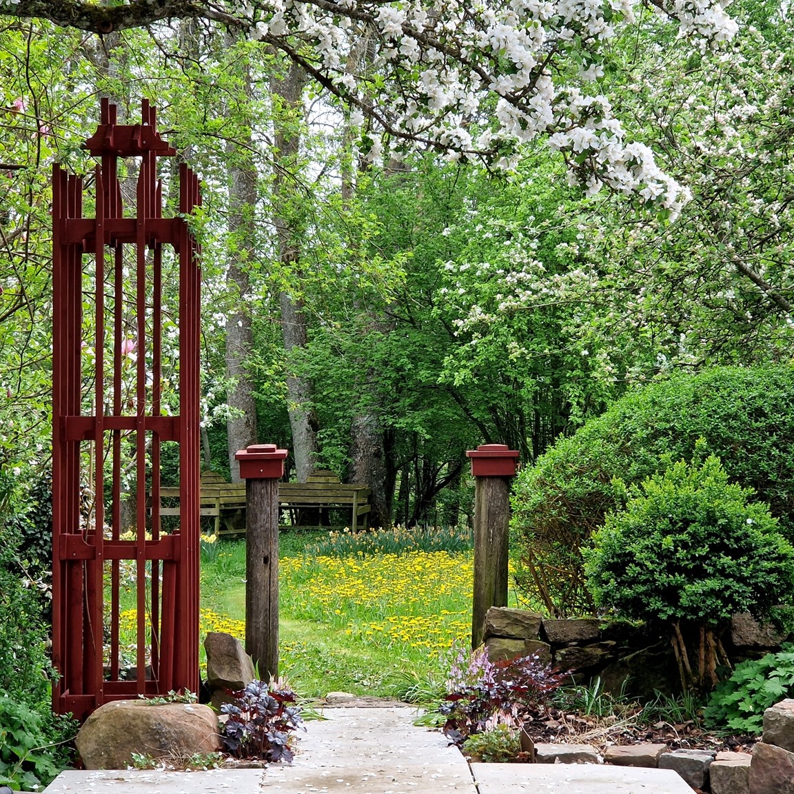 Bestående av flera trädgårdar/rum: Hasselallé, Vit Trädgård, Gul Trädgård, Purpur Trädgård- Runt Trädgårdsland & Fruktträdgård. Samt Snowdrop Walk i feb & mrs