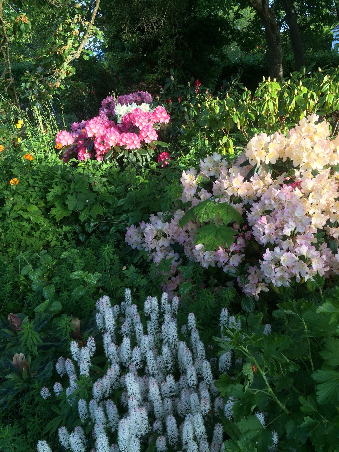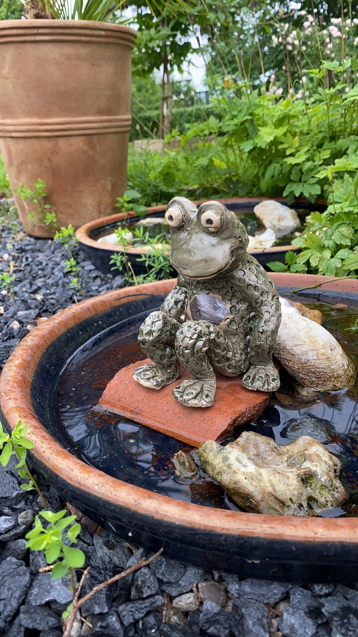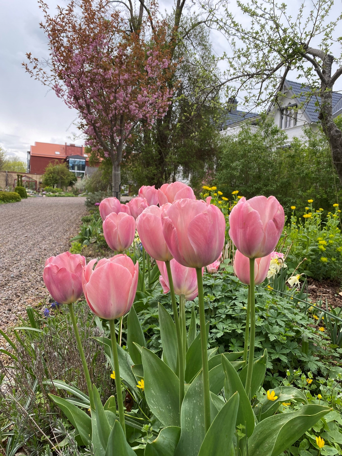 Bosse samlar på Kamelior så under våren njuter vi av denna färgprakt. Lena har under ett par år intresserat sig för trädgårdskonst i keramik så det kan dyka upp både grodor och kvinnor och män som gungar i träden.