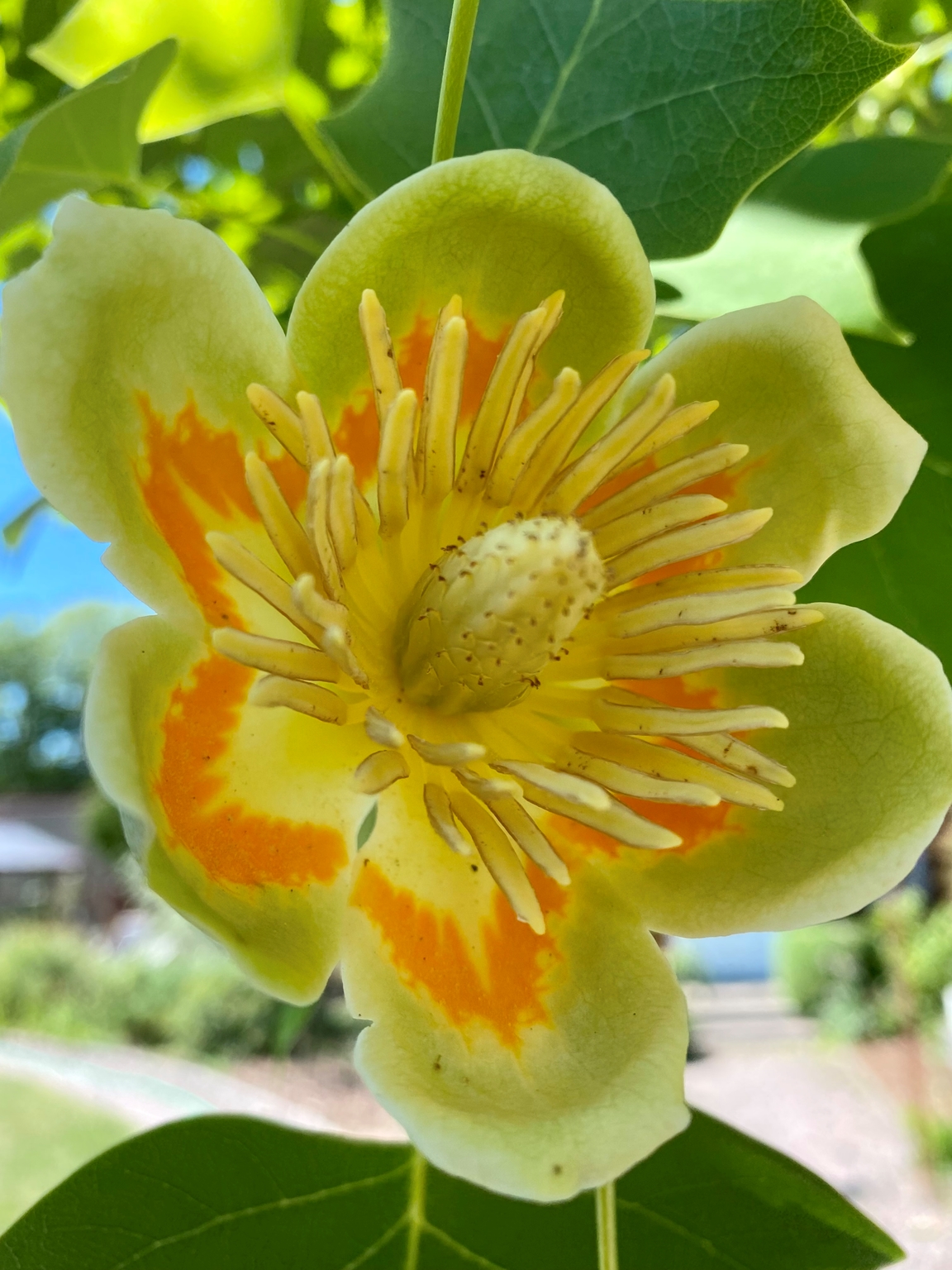 Ett underbart 30 år gammalt tulpanträd blommar som finast runt midsommar.