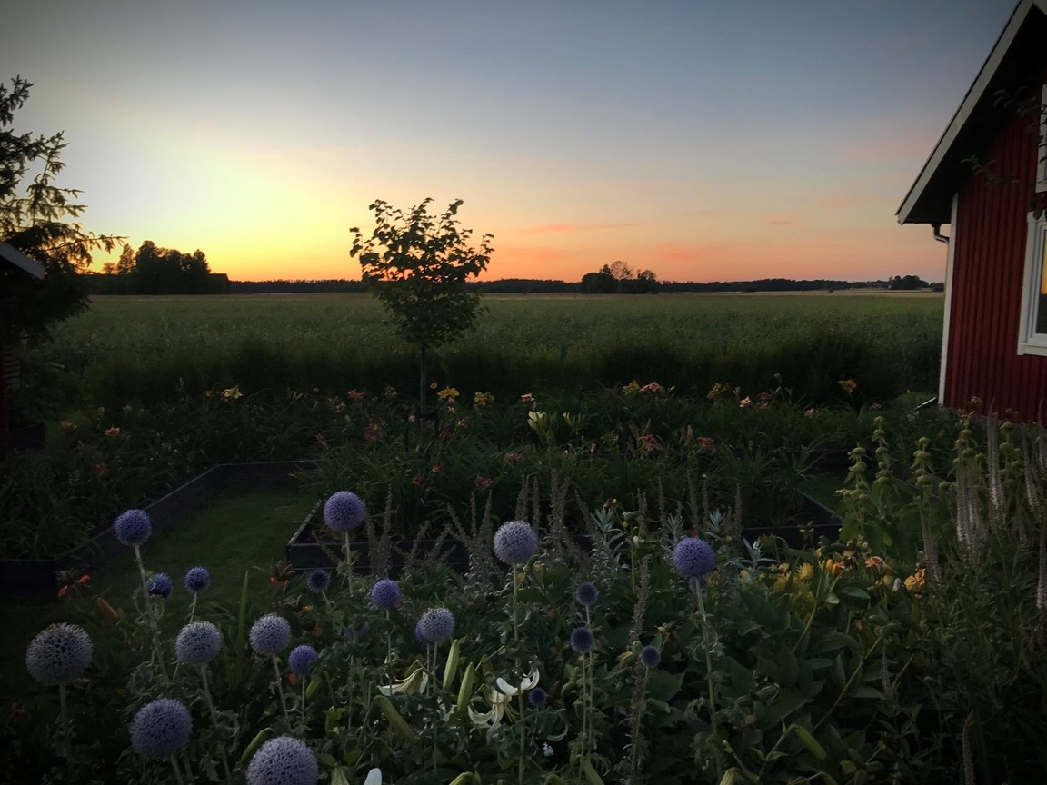 En bit utanför Skövde hittar ni vår oas på jorden, en avstyckad 100-årig gård med jordbruksmark som närmaste granne. Sinnlig trädgård är en lantlig trädgård med generösa perennrabatter som skiftar karaktär över säsongen. En förkärlek till växter och odling genomsyrar trädgården. Vårlökar, pioner, dagliljor och perenner samsas i planteringarna som skapar ett paradis för människor och insekter.