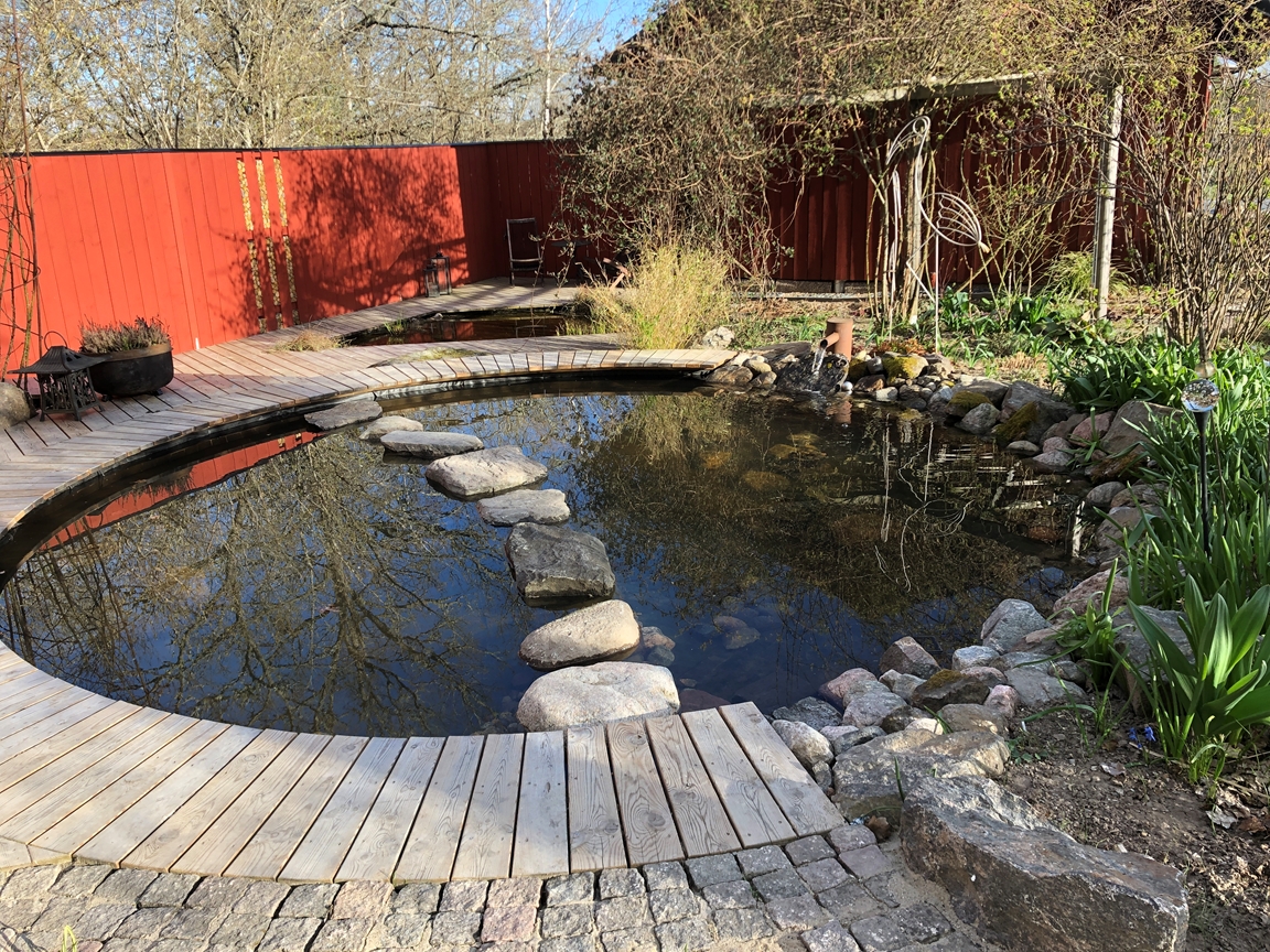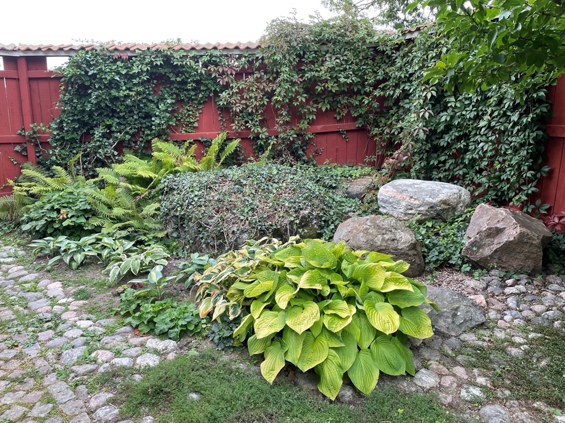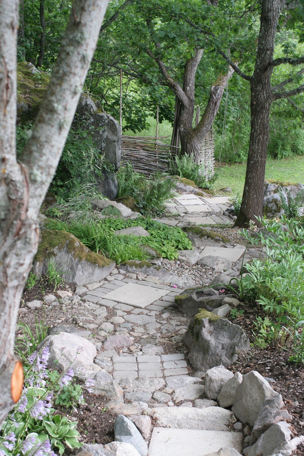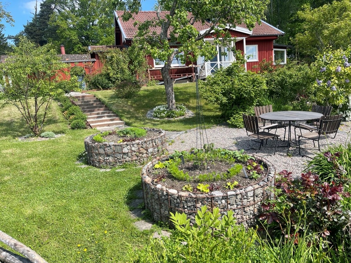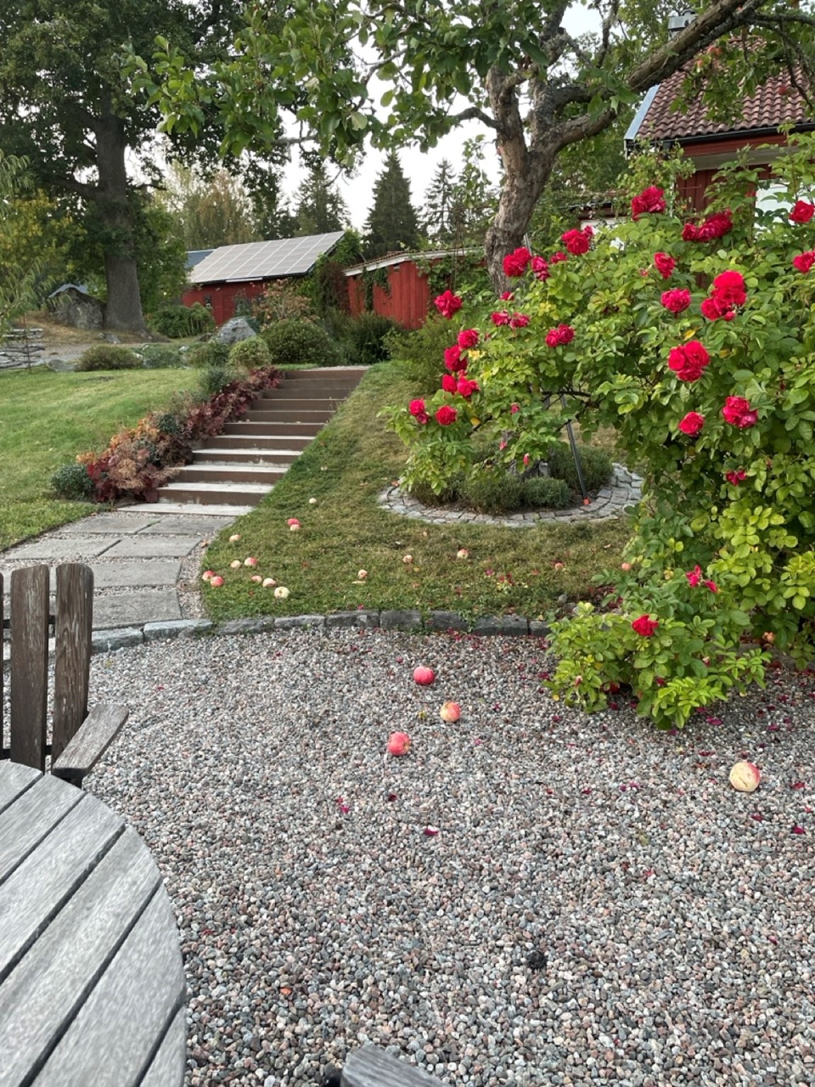 Vårt 80-tals hus ligger i en gammal trädgård, men dess nuvarande utseende har arbetats fram de senaste 17 åren under överinseende av de 100-åriga äppelträden som står kvar sedan gammalt. Trädgården är delvis kuperad och ligger i söderläge, de olika nivåerna bidrar till att det blir en mer lockande och intressant plats att promenera runt i.
