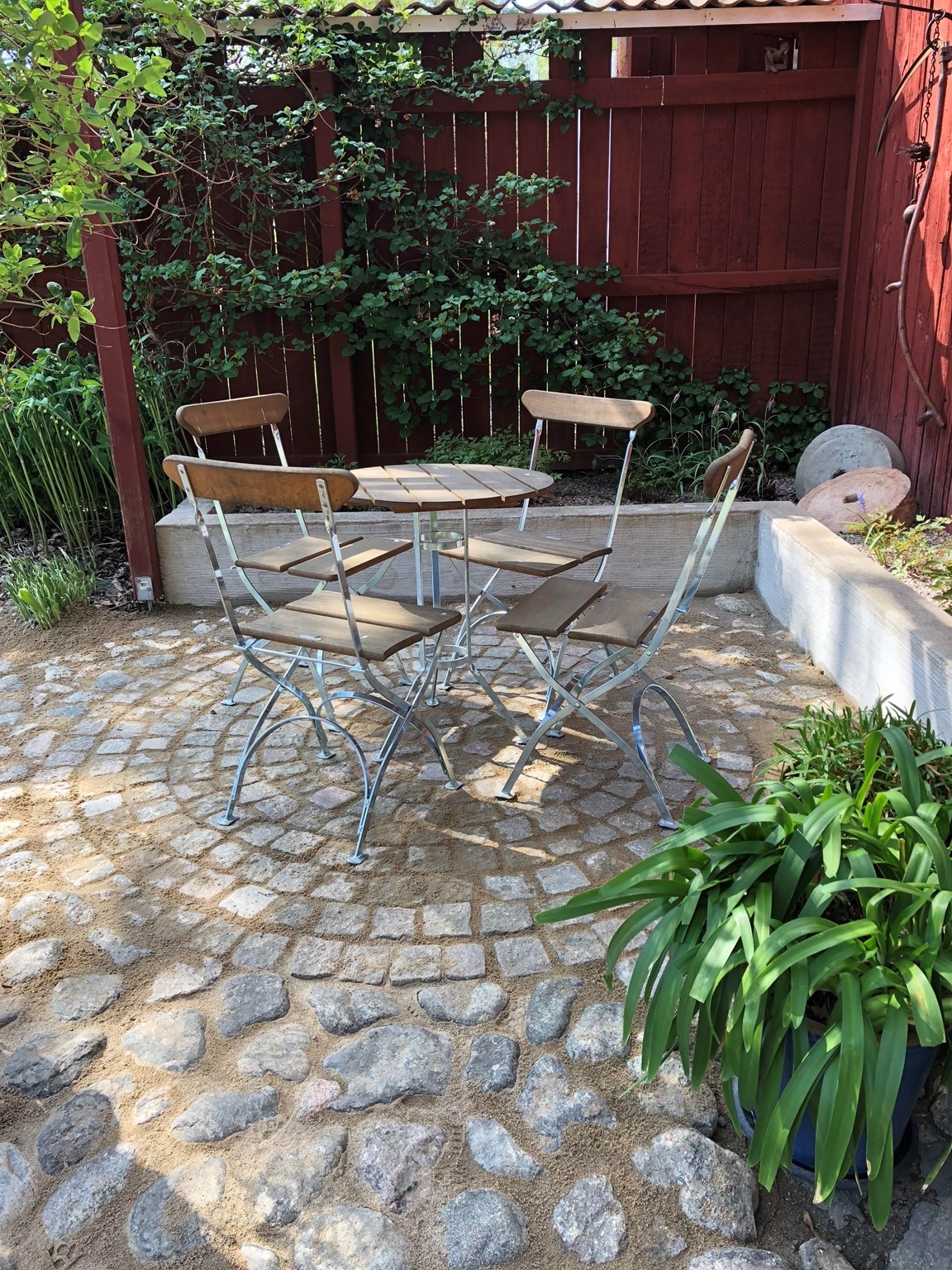 ”Vad vill jag se när jag sitter här”, har blivit en återkommande fråga jag ställt mig när jag designat trädgården. Det har resulterat i många sittplatser i vår trädgård, där även du kan slå dig ner och njuta en kopp kaffe, vilket kommer att stå framdukat under dagen för den som känner sig sugen.