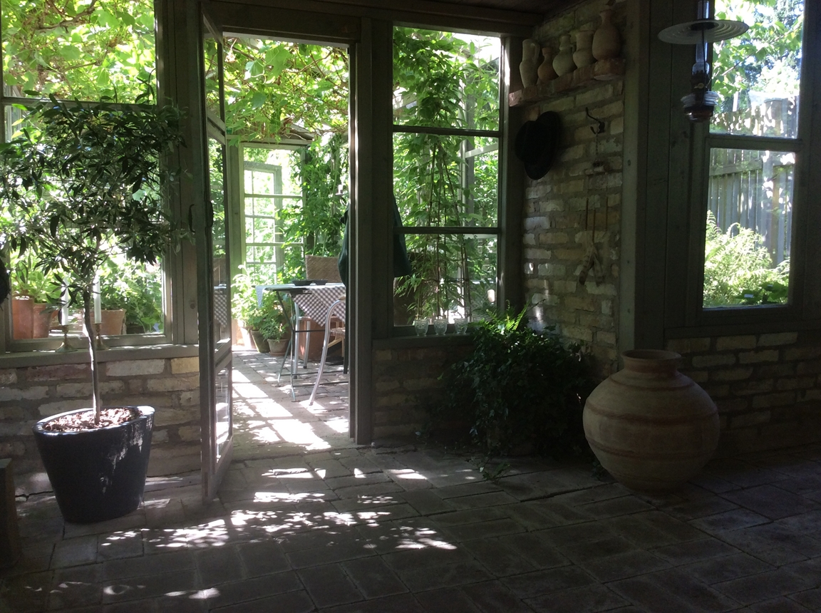 Solhem är en 100 år gammal trädgård som i år fräschats upp via beskärning, klippning och nya rabatter. Vårt uterum och växthus som byggts av Rögletegel och gamla fönster ger inspiration i denna återvinningens tid. Tomten är ursprungligen på 900 m2 men ytterligare 1000 m2 har tillkommit under årens lopp. På vår nya lilla plätt försöker vi oss på grönsaksodling men inser att det är en ständig kamp mot bl.a. sniglar. Rolf är skulptör och skulpturer i stengods i allehanda format kan ses här och var i grönskan.År 2011 hade vi den stora glädjen att vinna TV:s Trädgårdstoppen. En jury bestående av Hannu Sarenström, Peter Englander och Maria Andersson gav följande motivering: ”Ett fulländat formspråk, en återhållsam färgskala och ett fantastiskt växthus”.Tag gärna med fikakorg o njut av trädgården såsom vi gör.Hjärtligt välkomna hem till oss!