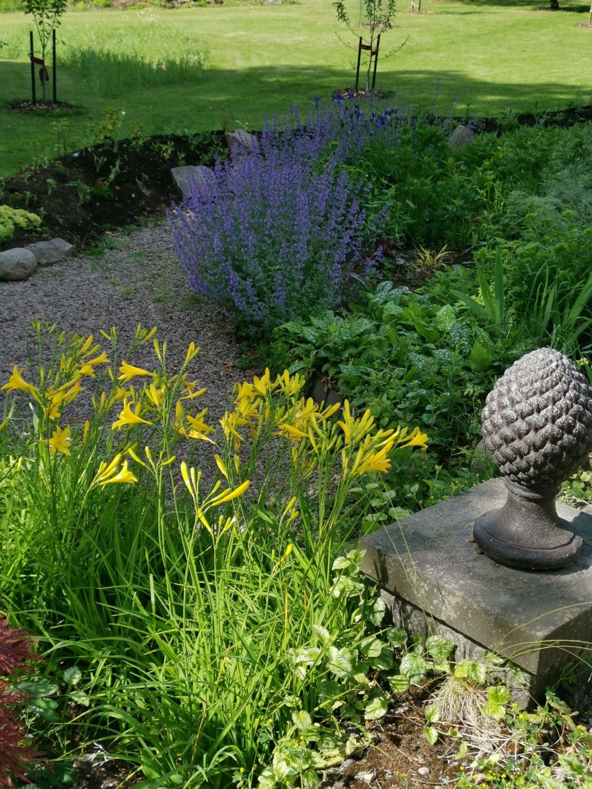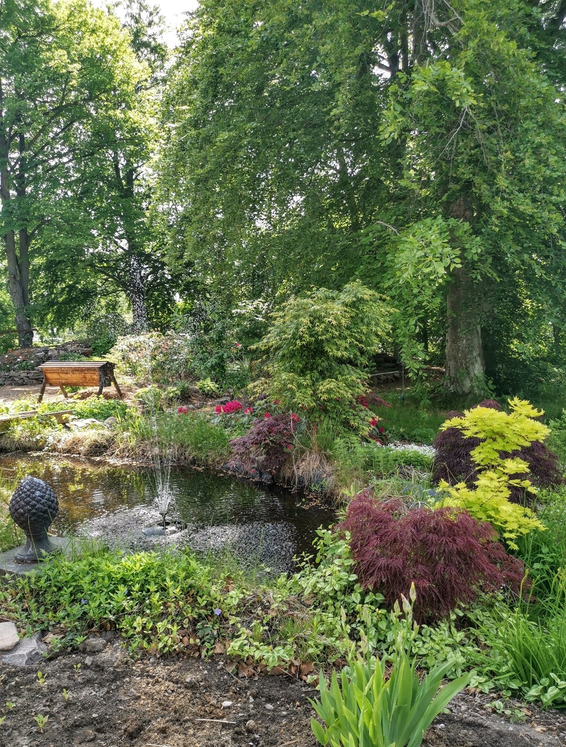 Vi utgår från de förutsättningar som finns och söker inspiration och kunskap från andra trädgårdar och kunskapskällor och provar i vår trädgård.