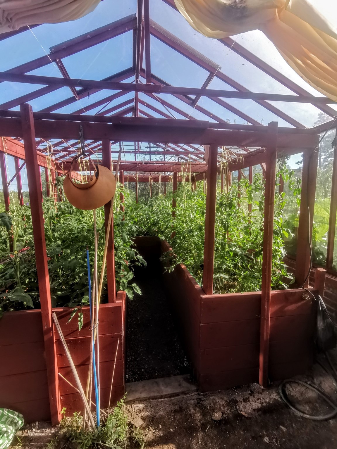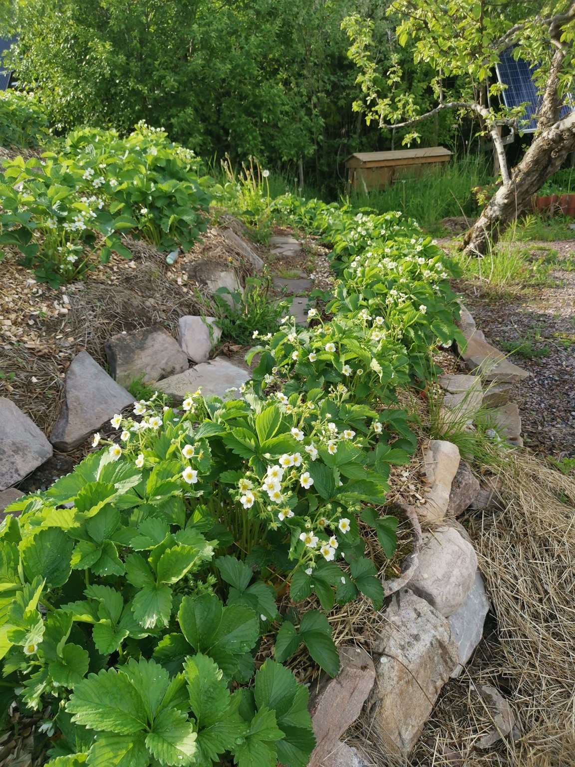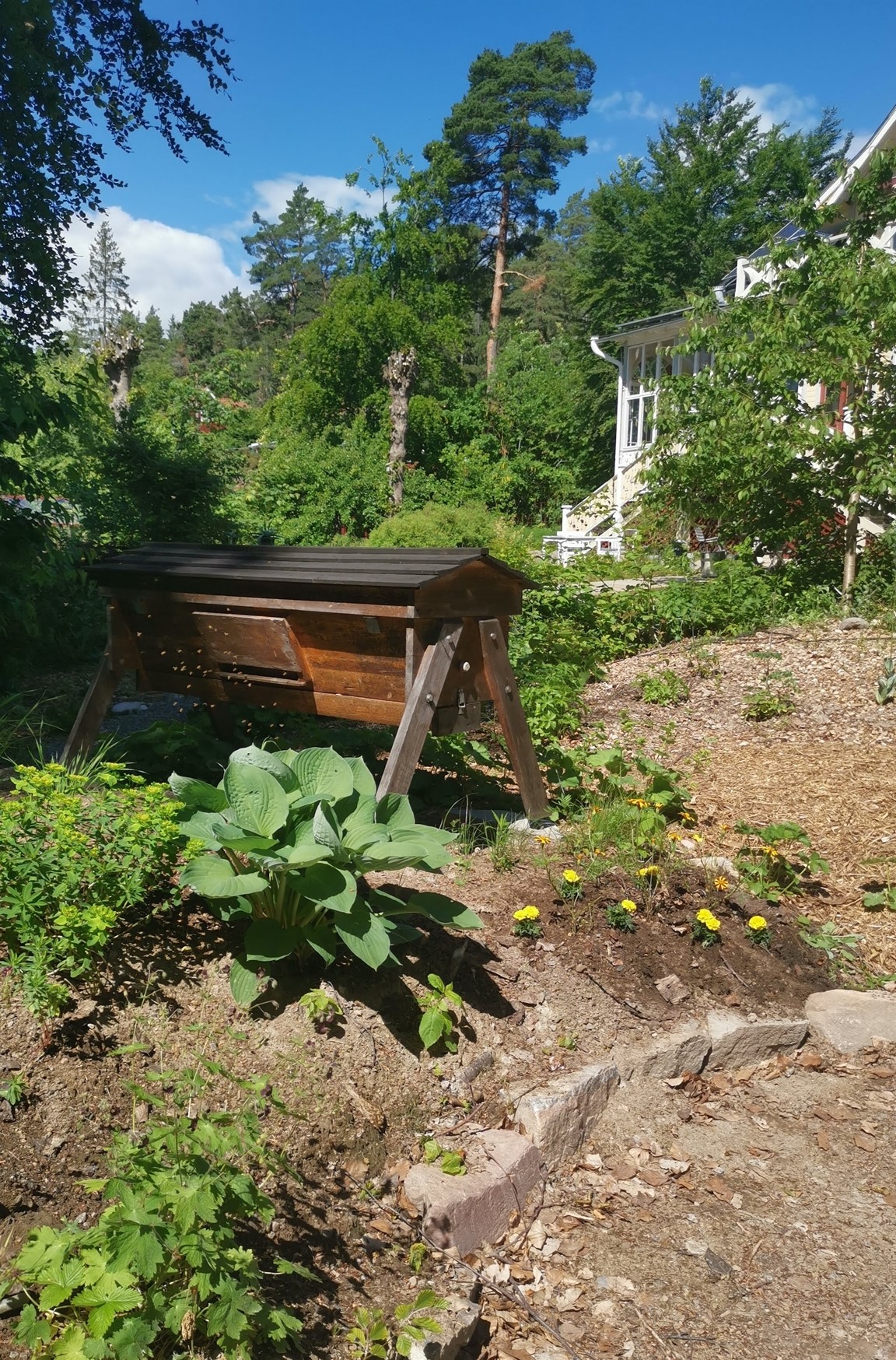 Nytt för i är att vi har vi flyttat en gammal köksträdgård närmare köket och byggt upp den med hügelbäddar och flisgångar. Där den gamla köksträdgården låg har vi byggt upp en bär- och frukgård med vin, hallon, aprikosträd, päronträd mm intill jordverkstan där vi komposterar och gör växtnäring på olika sätt av grönt som vi inte vill ha. Vi har också skaffat löpankor för att se om de kan hjälpa till med att reducera sniglarna, som också trivs lite väl bra. Besök gärna vår hemsida www.scherps.org och se vad har gjort under åren och blogg http://villasolviken.blogspot.com/ för att se vad vi gör just nu.