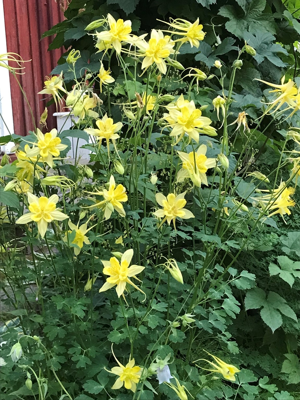 Vi har två små växthus, ett som jag odla tomater och gurka i och ett som jag tagit bort taket på för att det alltid gick sönder på vinter när tjälen gjorde sitt. nu har jag lite tomater och en vinranka där och lite blommor. barnbarnen har också en lekplats bakom och det ska finnas lite ätbart i närheten för att dom ska kunna ta när dom leker