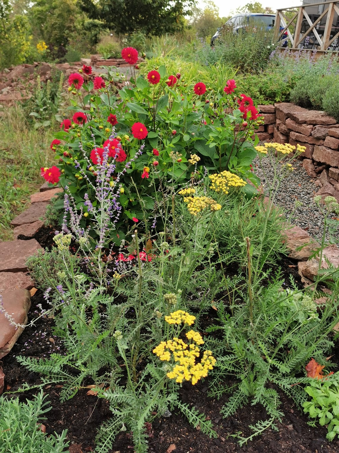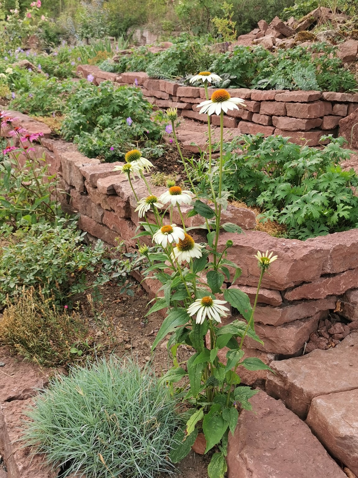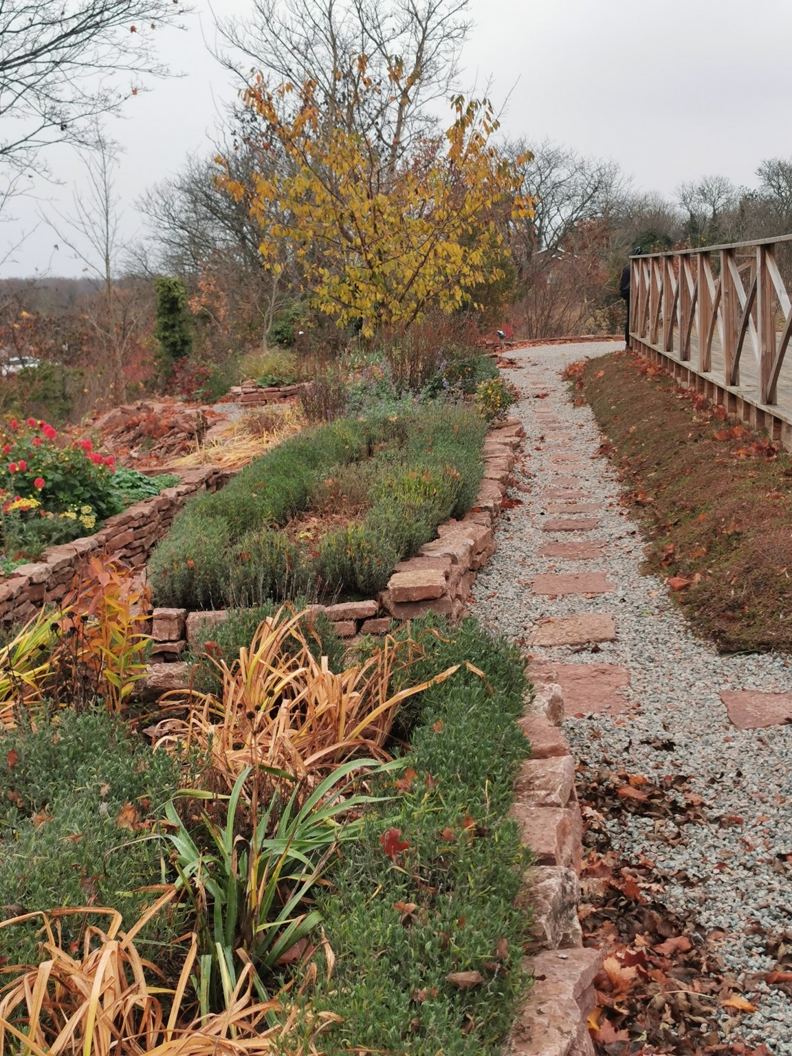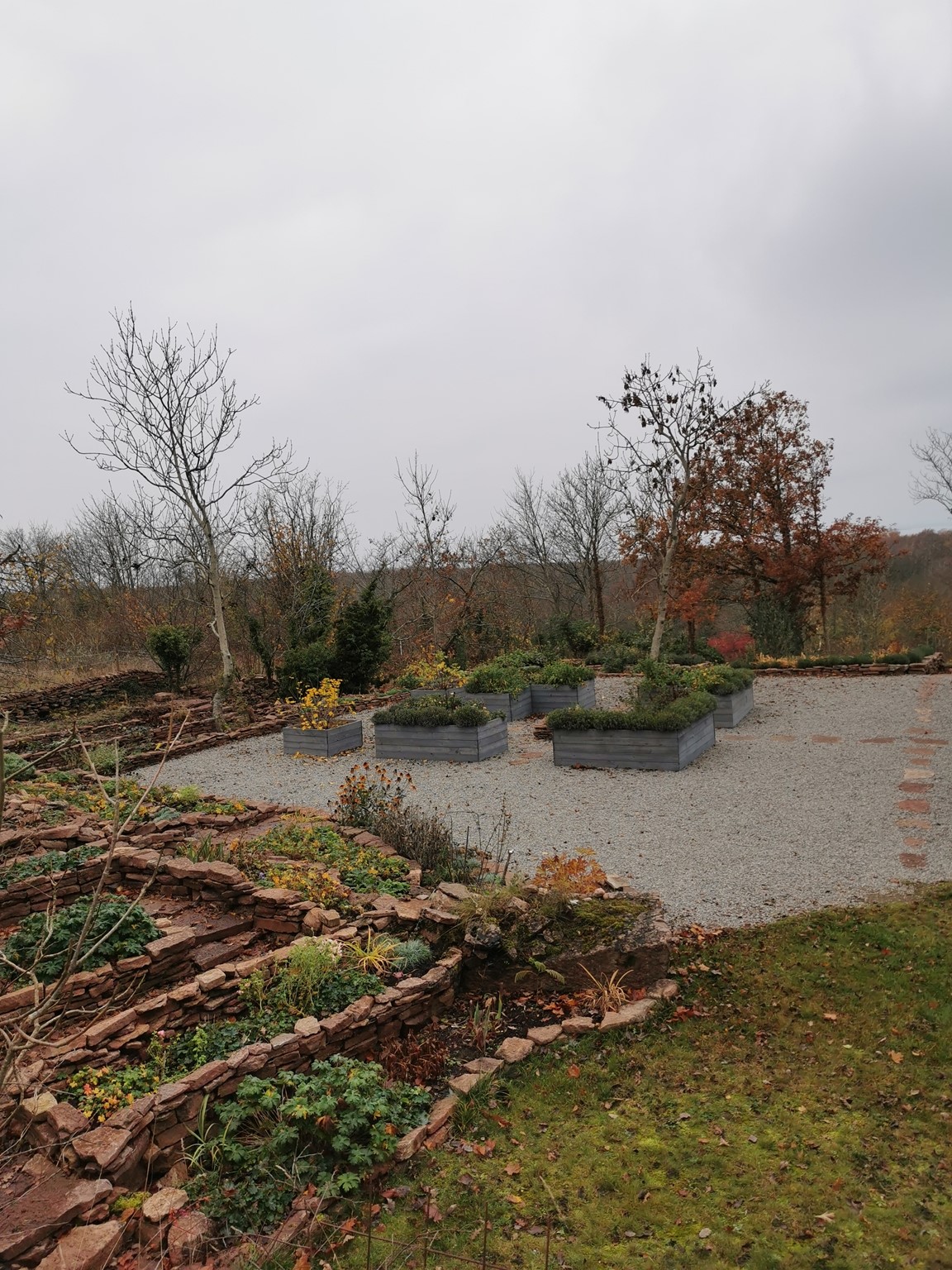 En ny trädgård på kanten av landborgen med vacker utsikt över Kalmar sund, där det vilda möter det tuktade. De flesta rabatterna är uppbyggda av kalksten. Här finns rosor, perenner, buskar och träd.
