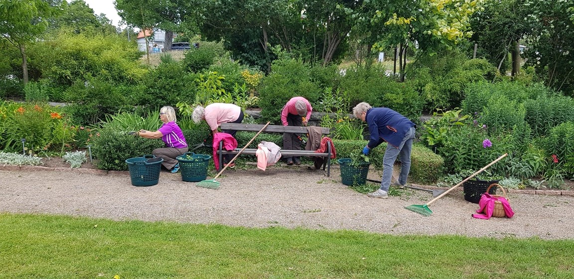 För att täcka kostnaderna för inköp av material och vissa tyngre tjänster ansöker gruppen om medel från kommunens speciellt avsatta medel för landsbygdens försköning. Medel för större arbeten har även erhållits från fonder och länsstyrelsen. Med en engagerad skötselgrupp har det därmed varit möjligt att kontinuerligt utveckla nya trädgårdsidéer. Passa på att njuta av ”Azalealunden” och ”Humlebokslunden” , ett antal klassiska paradrabatter med solälskande perenner, en nejlikgård samt den i den omgivande slänten placerade ”Filosofgången” med ett skuggigt parti och ett mer solbelyst med gulbladiga växter, den så kallade ”Gula gången”. I slänten finns också ett nyanlagt våtmarksparti.
