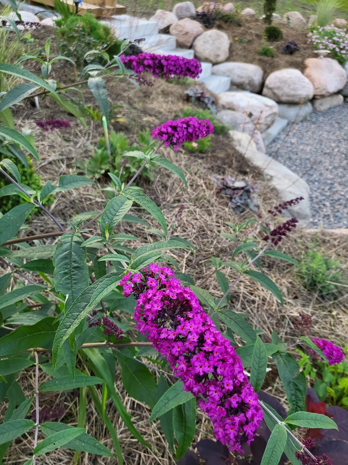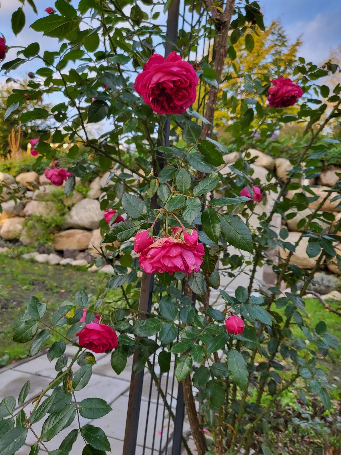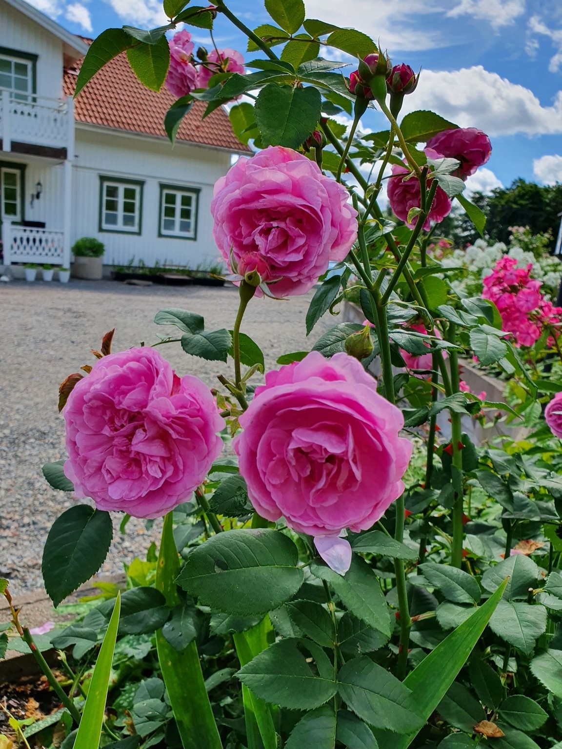 Trädgården är stor, ganska ung och delvis under uppbyggnad fortfarande. Vi har växthus, pallkrageodling, bärland, pergola, ruin, jordkällare, nedsänkt grillplats, blivande vattenfall m.m. Många olika perenner och fruktträd. Tomten är drygt 7 400 kvm och består till stor del av en slänt.