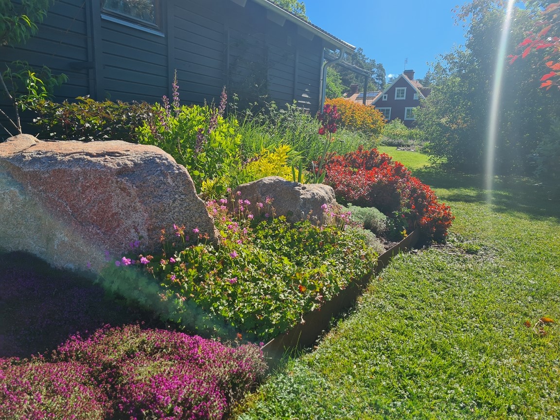En tillåtande trädgård på 2100 m2 strax öster om Gränby centrum i Uppsala. Vi värnar särskilt om insekter och fåglar och det finns delar som därför är vildvuxna. Vi tycker om barrväxter, berberis, korneller och gräs, men intresset spretar iväg åt många håll! Vi är också med i STA Svenska Trädgårdsamatörerna.