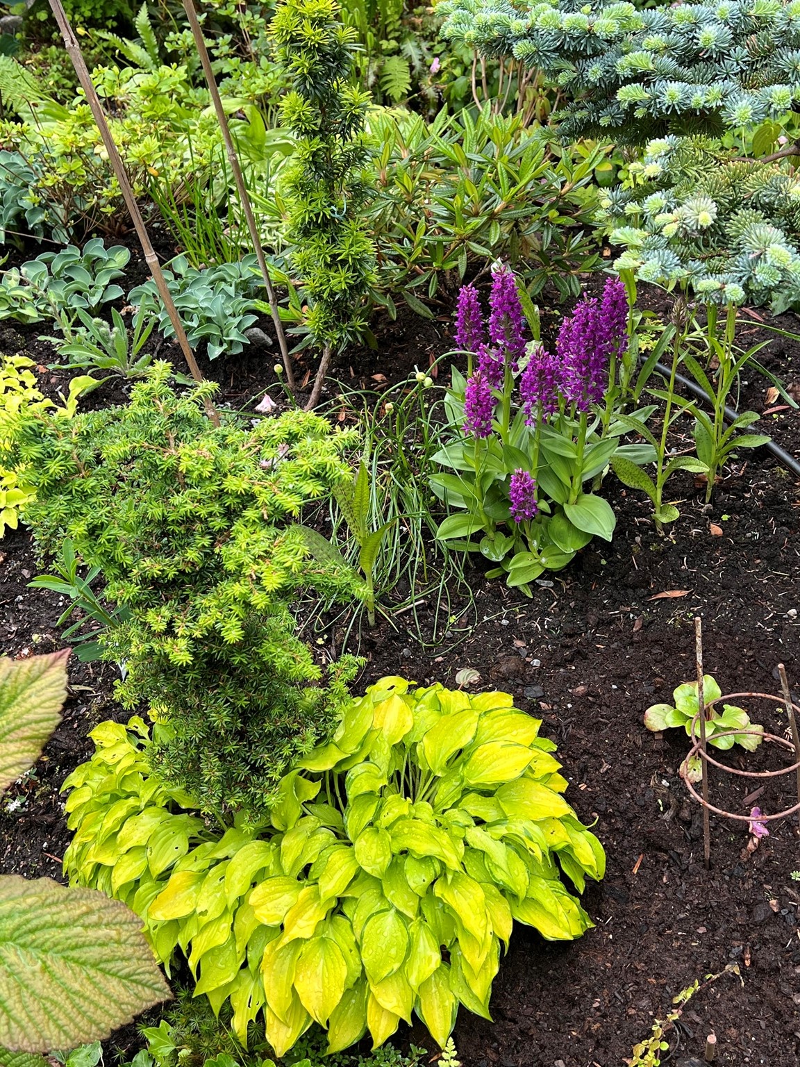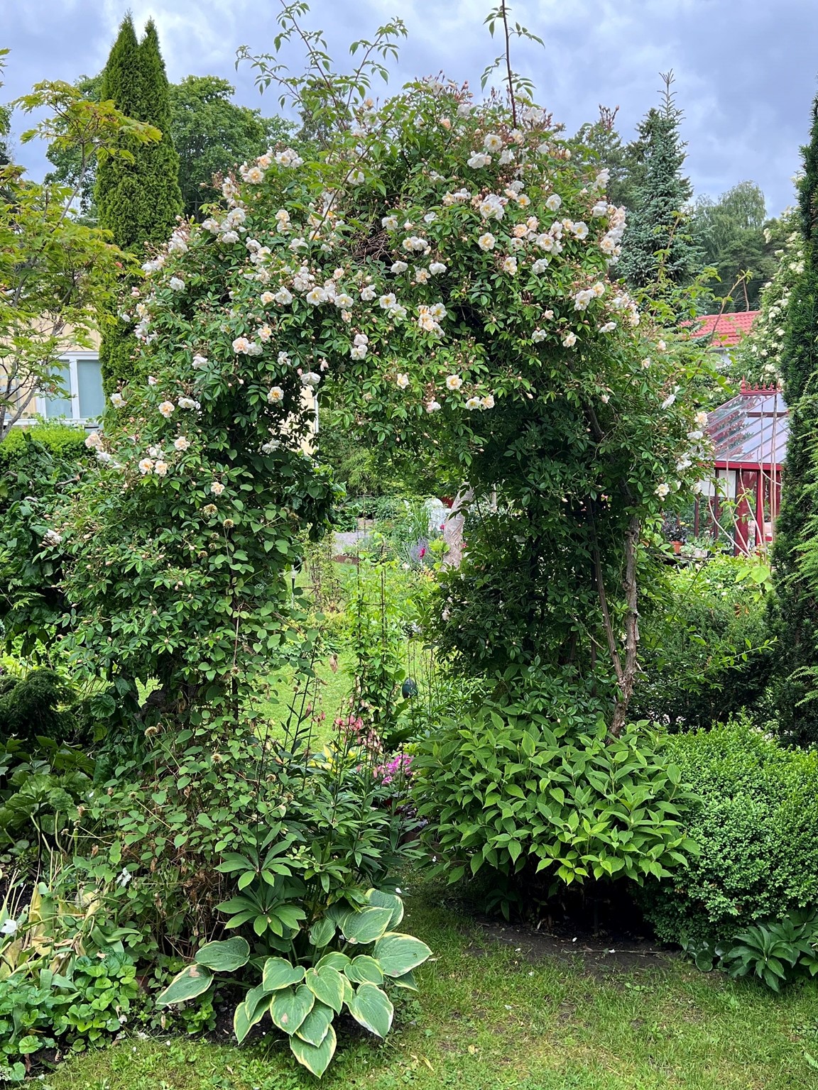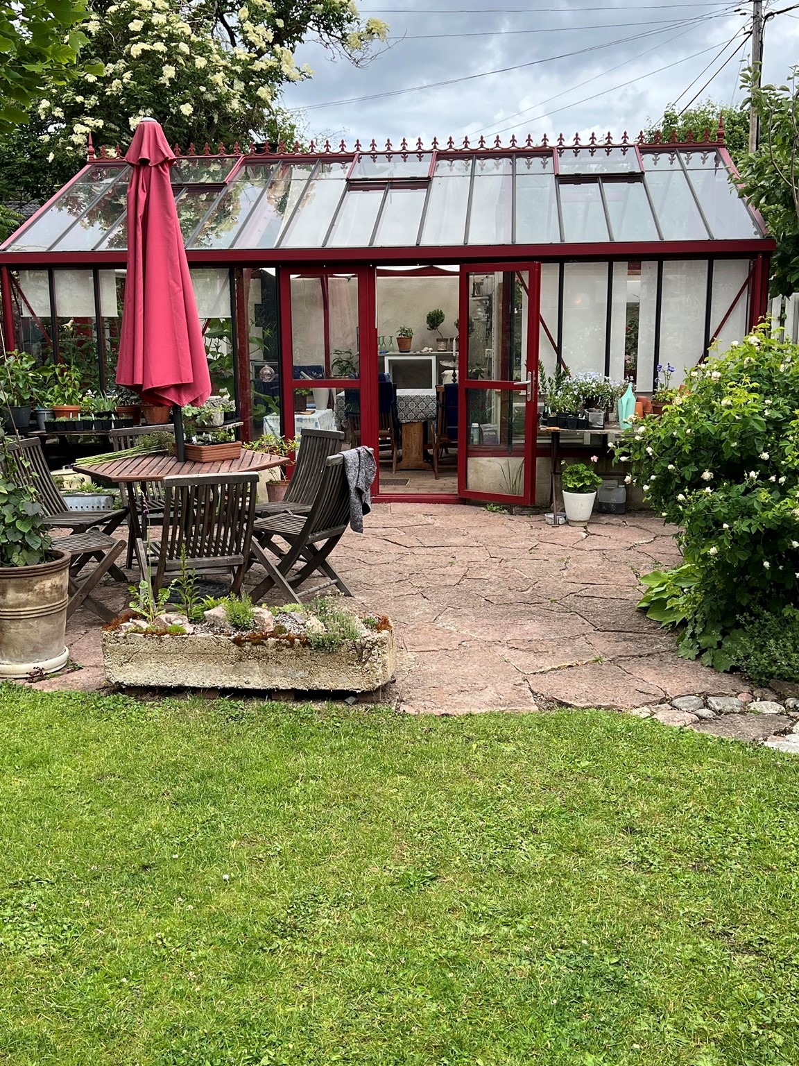 I trädgården finns både alpiner, höga perenner, buskar och träd både av ovanligare och vanligar slag. Ett större växthus är centralt placerad i trädgården med tillhörande arbetsyta .Jag har länge varit medlem i Trädgårdsamatörerna där man får inspiration och kunskap. Jag har lite försäljning av växter vid entrén, det är delningar och frösådder från min trädgård. Här finns gott om sittplatser och vår förhoppning är att du kan sitta ner en stund och njuta. Vi serverar fika för den som vill ha, betalning med swish.