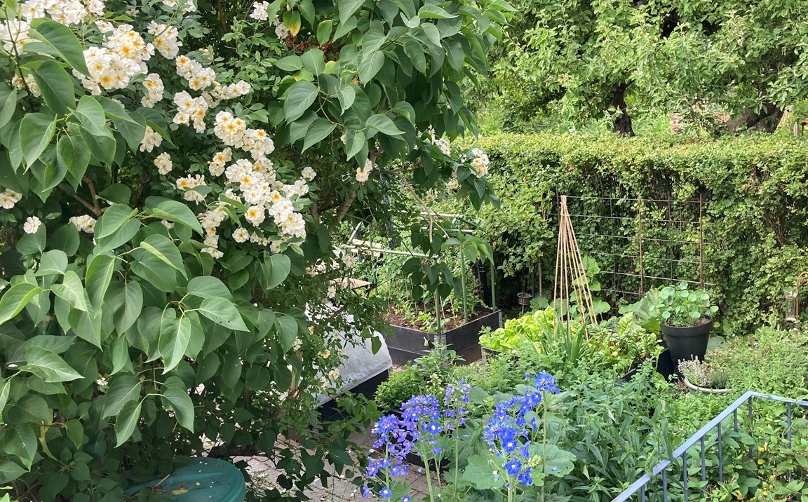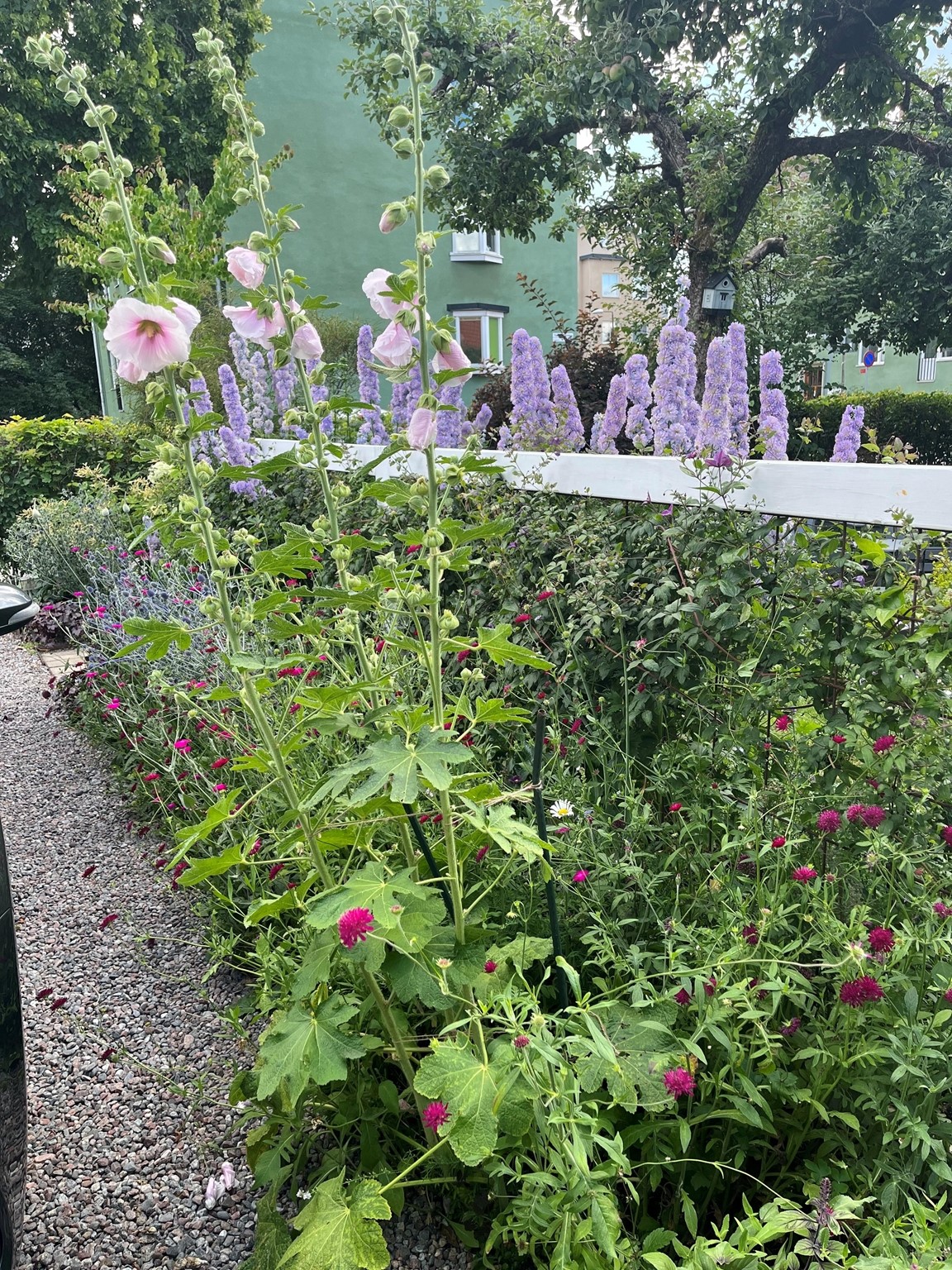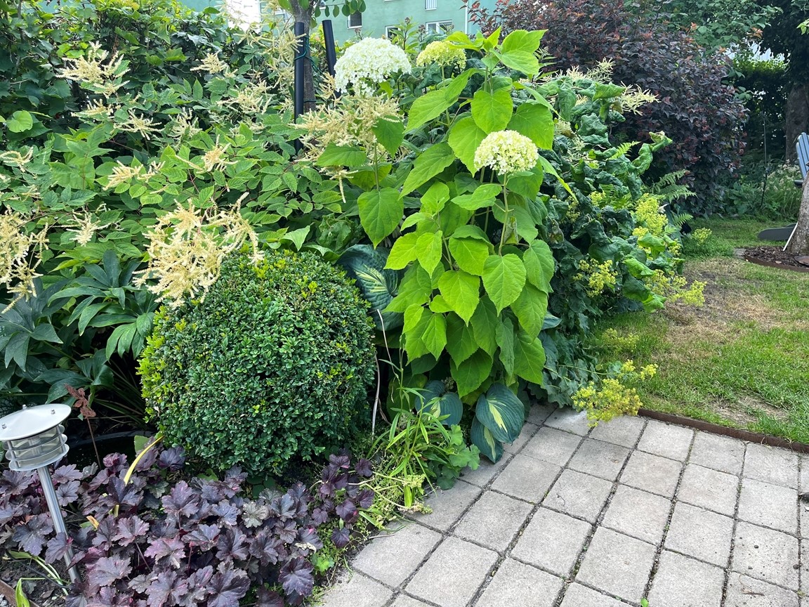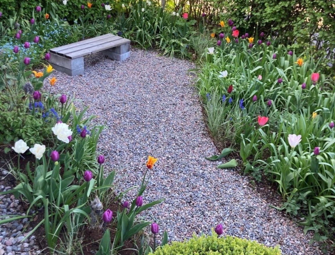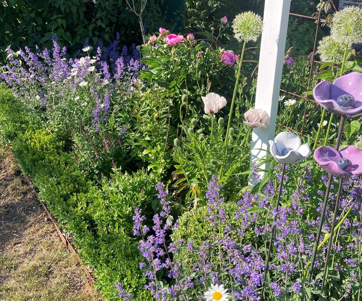 Vår trädgård ska vara intressant även när vi blickar ut genom fönster – likväl för de som passerar utanför tomten. Att få bidra till deras närmiljö, väcka intresse och nyfikenhet känns värdefull och har lett till såväl goda samtal och nya kontakter.