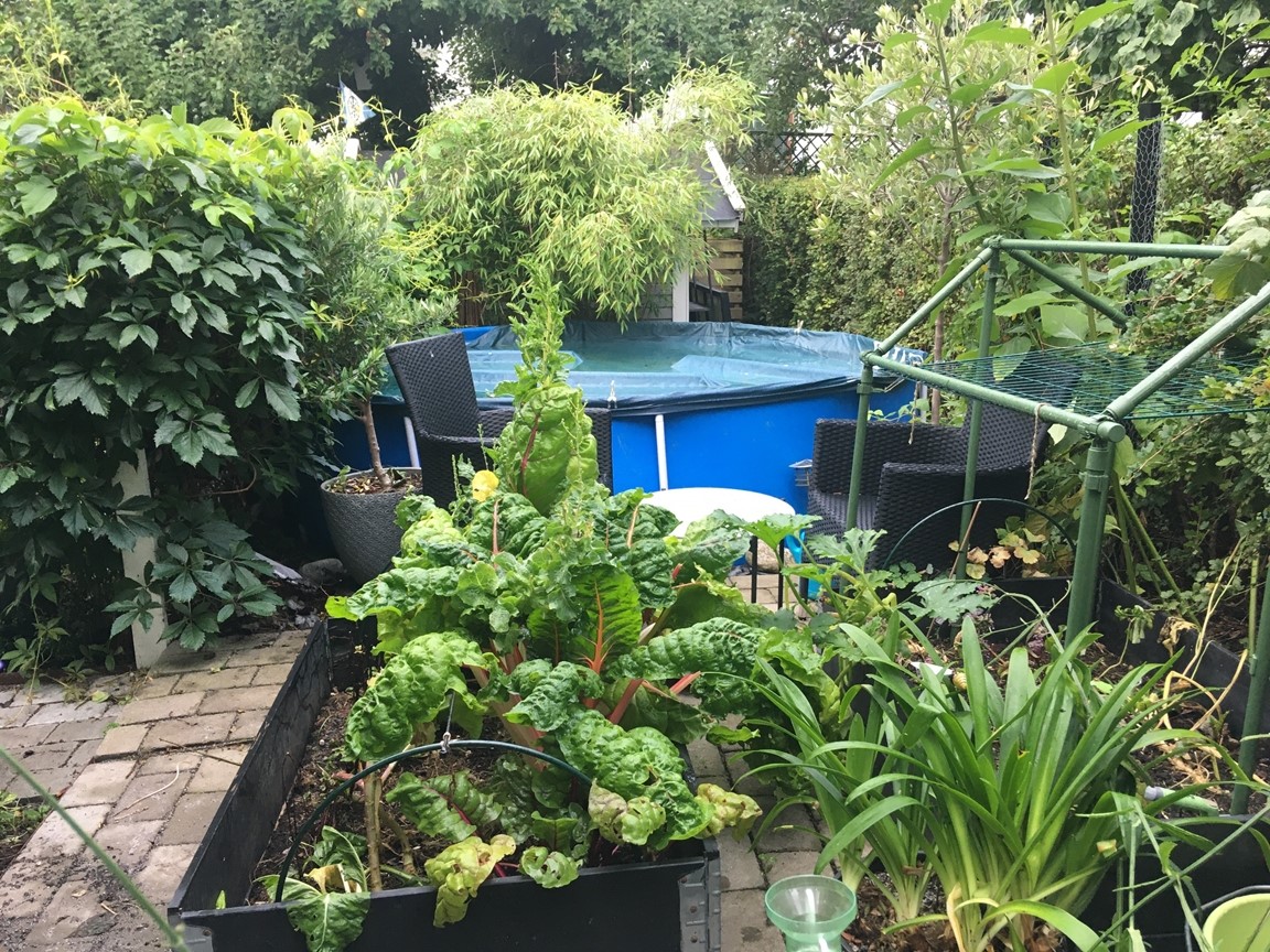 Nu med uppvuxna barn har trädgården blivit platsen för det goda livet - året runt. Här finns många små rum vilka gör möjlighet till ro, njutning, odling, praktiska funktioner och social samvaro.