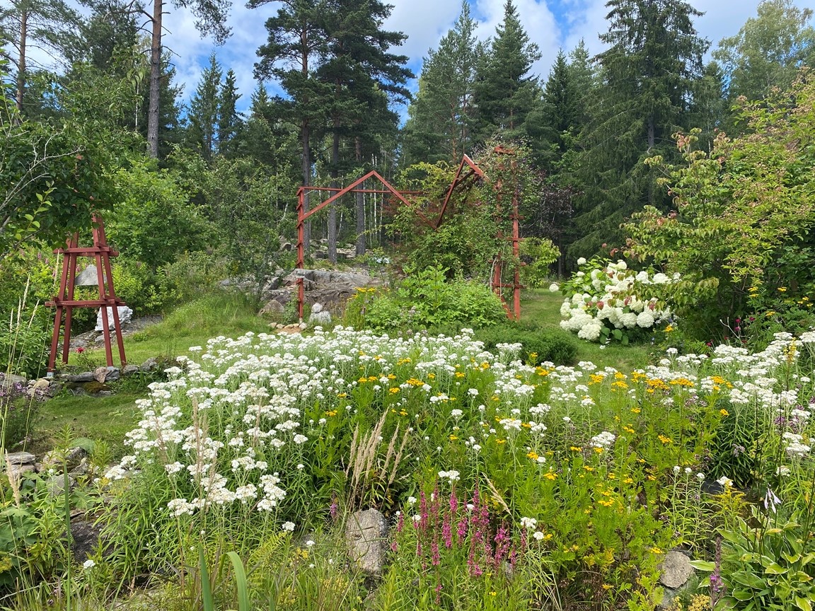 De naturliga förutsättningar har starkt styrt trägårdens utveckling sedan 2003. Trädgårdens utveckling har sked i Arts and Crafts anda.
