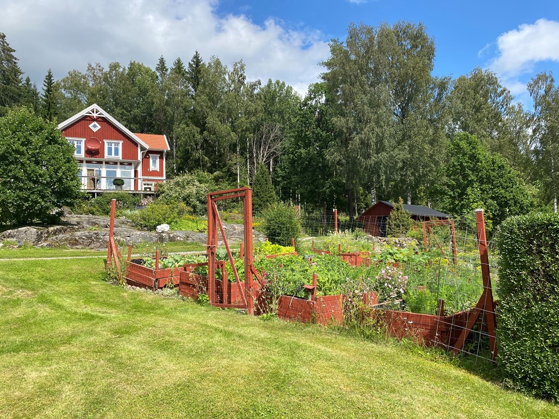 Trägården var förr ett soldattorp och ligger naturfint mellan berghäll, skog och vatten.