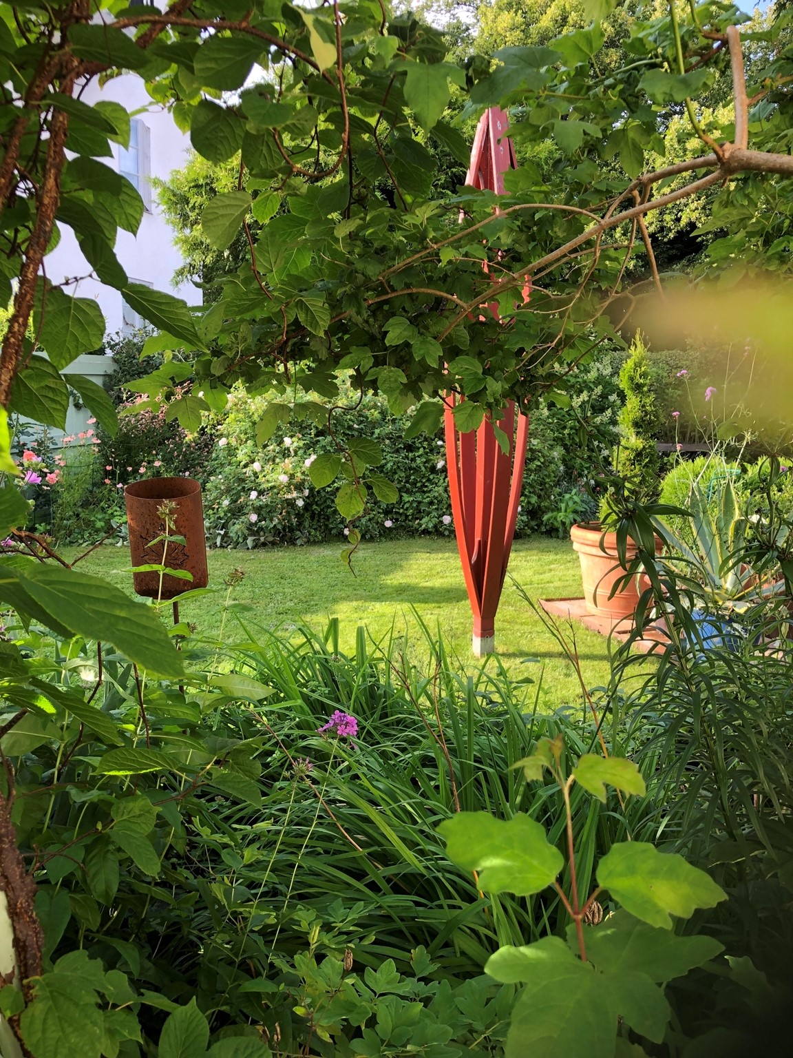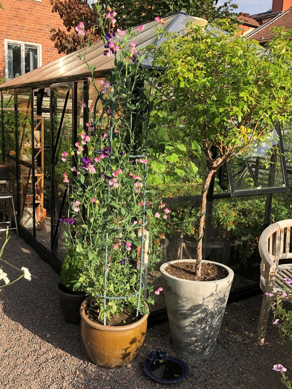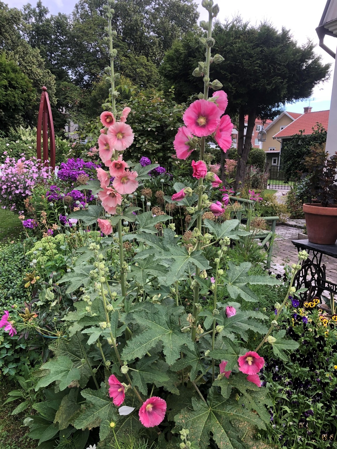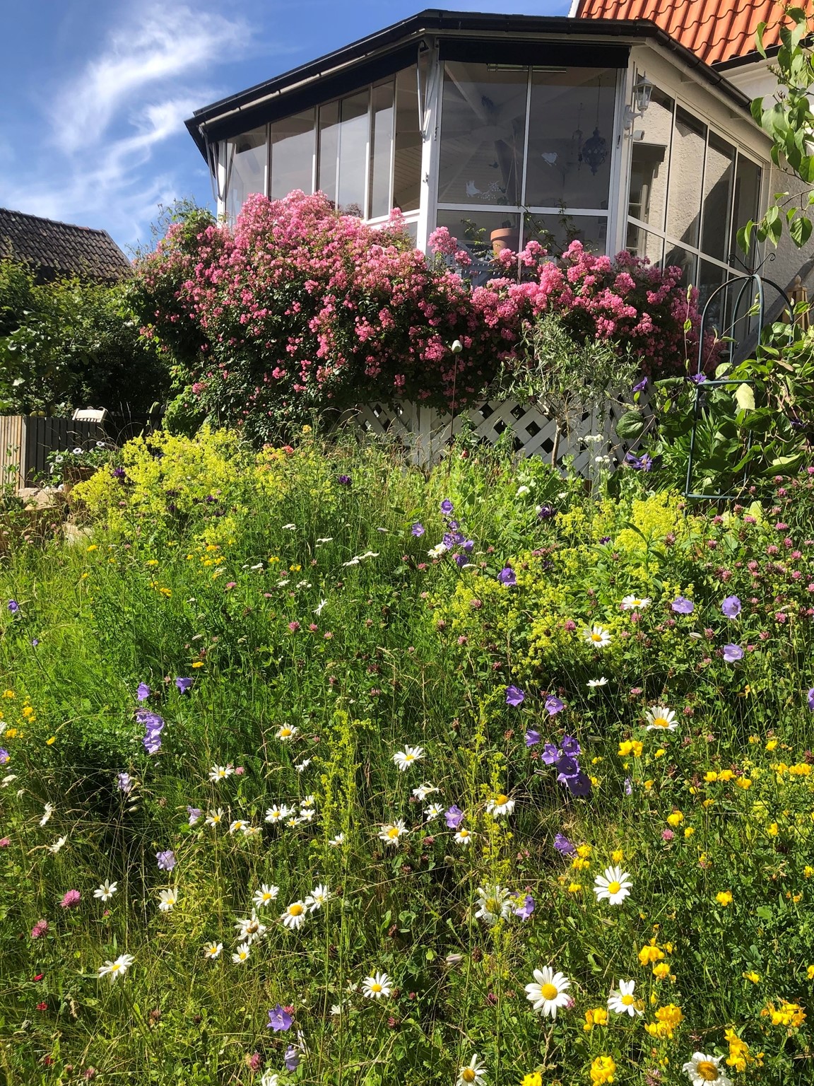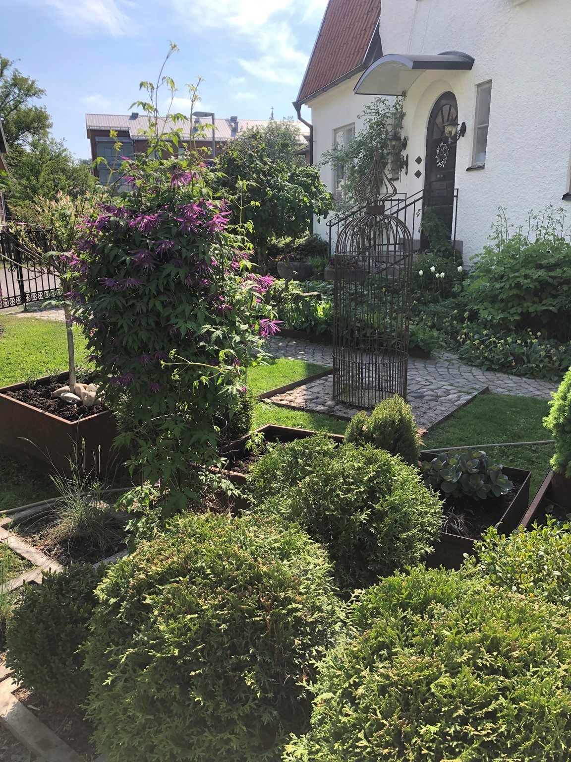 Villaträdgård i Nora stad med microklimat. Inspirerad av Engelska trädgårdar Art of Crafts. Tuffsig med finish. Här finns perenner blandat med rosor och buskar. Växthus och köksträdgård med inspiration från potage. En trädgård med blomning från tidig vår till sen höst.