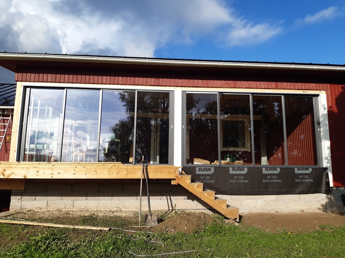 Planerna på att bygga en rejäl altan på baksidan och tak över förstukvisten på framsidan sattes i verket ifjol och är på god väg. 5 st fruktträd och en början till äng ordnades på framsidan men fortfarande finns en del kvar att göra för att få till en mer finjusterad look.