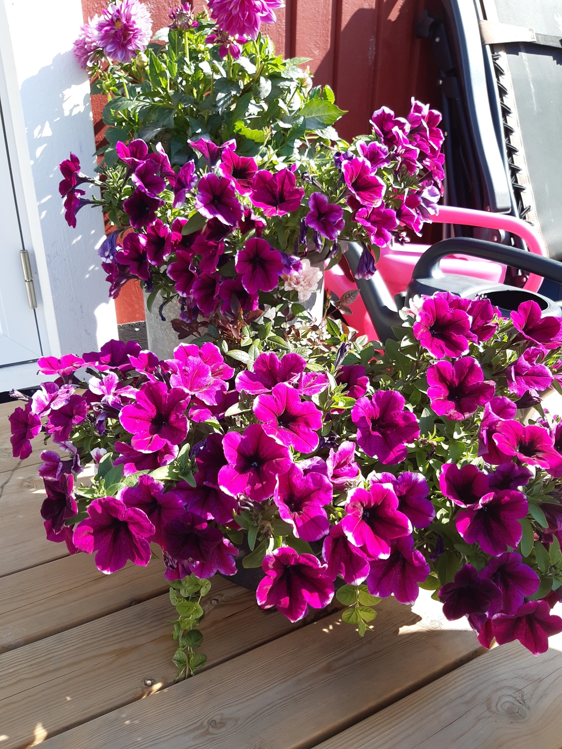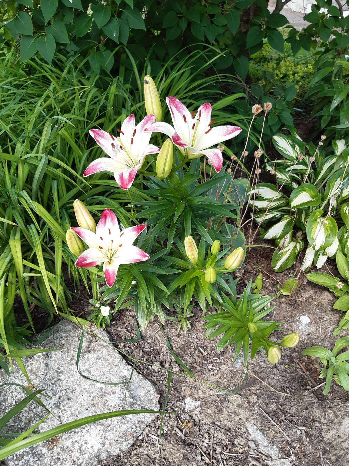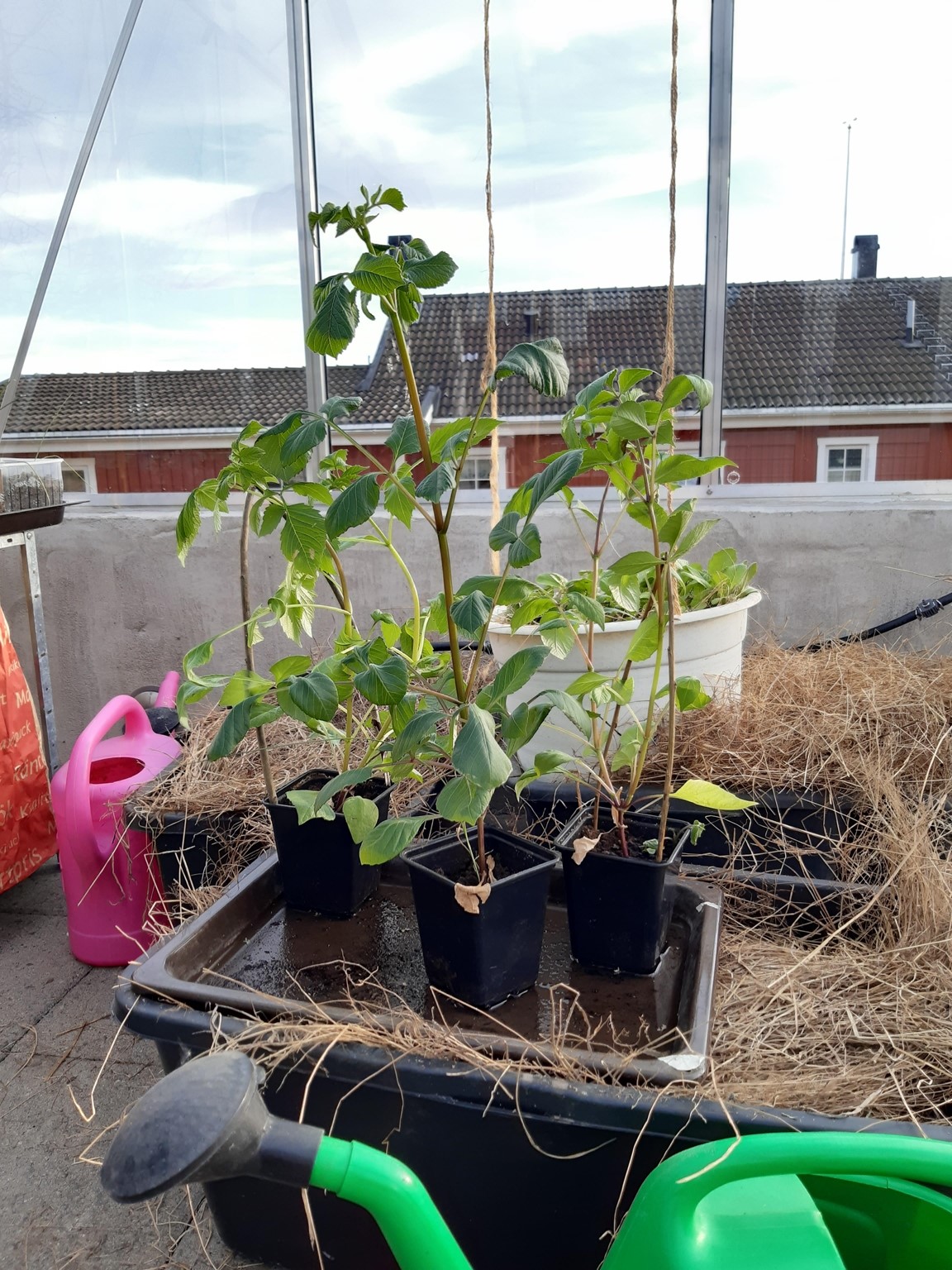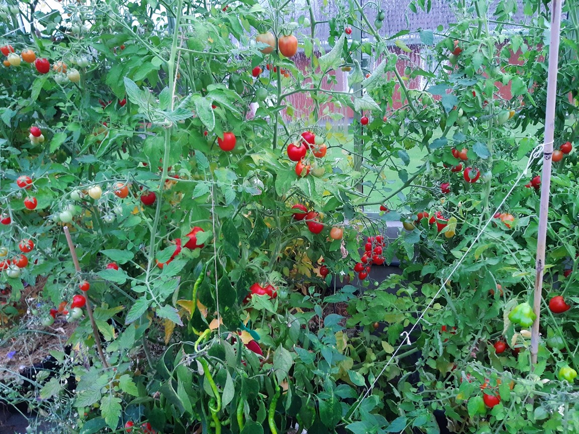 Vi har bott i vårt hus med vår trädgård i drygt 16 år och mycket har förändrats sedan vi flyttade hit. Då fanns ett antal träd och buskar utplacerade här och var tillsammans med ett par rabatter och lite jordgubbar. Nu finns här ett trädgårdsland som vi för ett par år sedan började dela upp i långa lådor för att undvika att trampa ihop vår leriga jord, en liten hallonhäck, ett jordgubbsland, en lekstuga omgiven av smultron, en grillplats delvis omgiven av en låg mur med rabatt ovanför, ett växthus på 20 m² som vi byggde 2021. Vi tycker om både sådant som är vackert och sådant som går att äta och har därför både utökat rabatter, gjort bäddar för sommarblommor till buketter och planterat päron- och plommonträd.