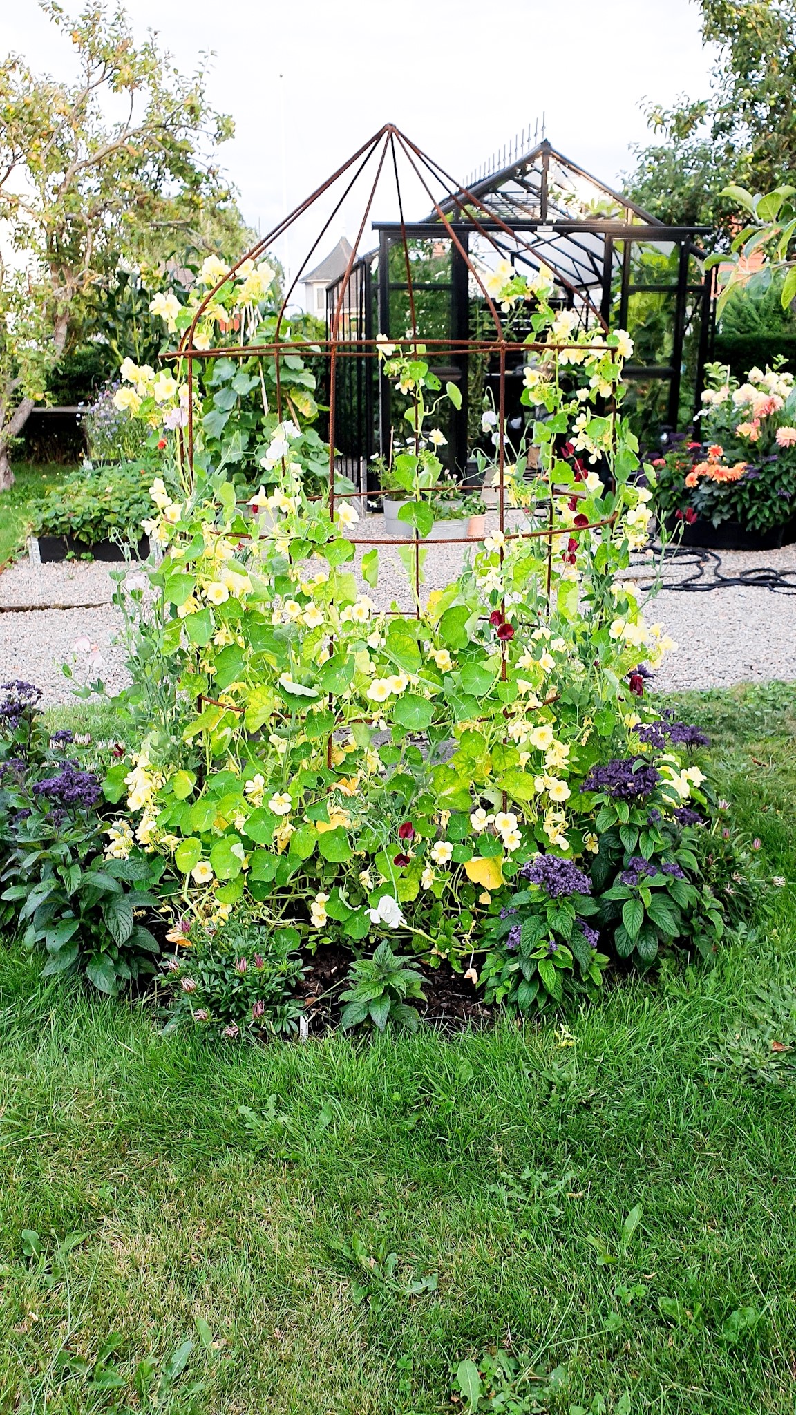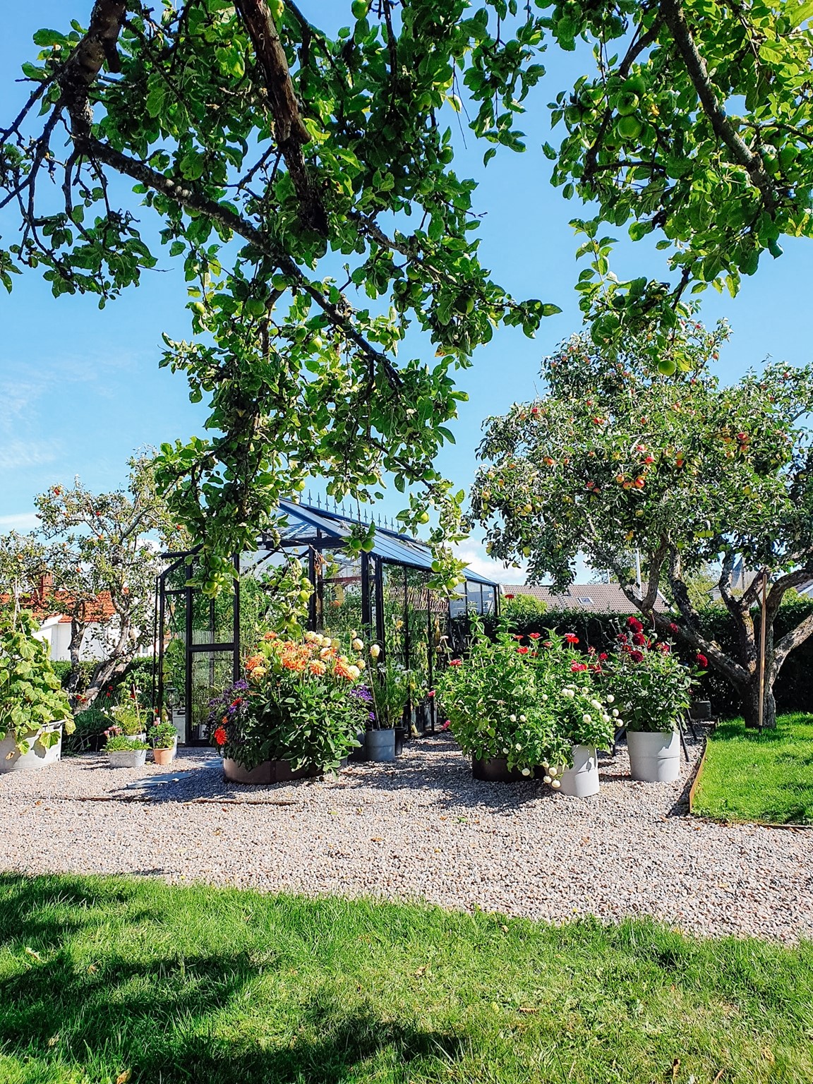 I trädgården får Ni njuta av blommor i alla dess färger. Det finns bland annat dahlior, luktärt, rosenskära, lejongap och rosor. Det finns även diverse perenna rabatter, både i skugga och sol. I växthuset samsas tomater, gurka och paprika. I vårt drivhus kan Ni dofta på kryddväxter av olika slag.