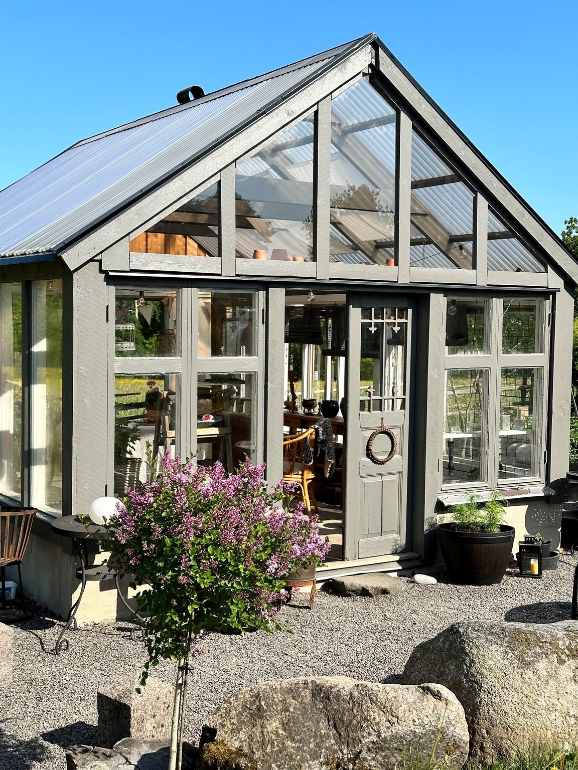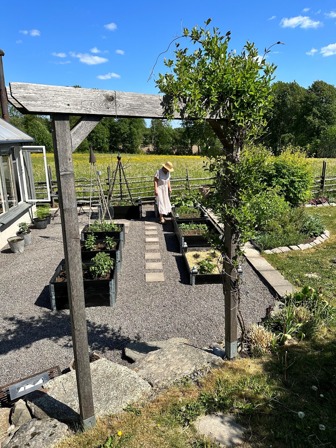 Min trädgårdsdröm började under pandemin. Då jag började bygga upp en lite köksträdgård under våren -20. Den revs sedan under hösten för att ersättas av ett växthus som vi byggde av återbruk.