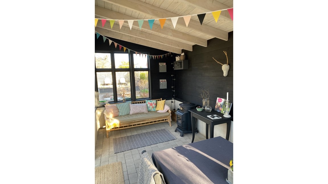 Vårt smycke är det egenbyggda "växthuset" som är byggt av gamla fönster.