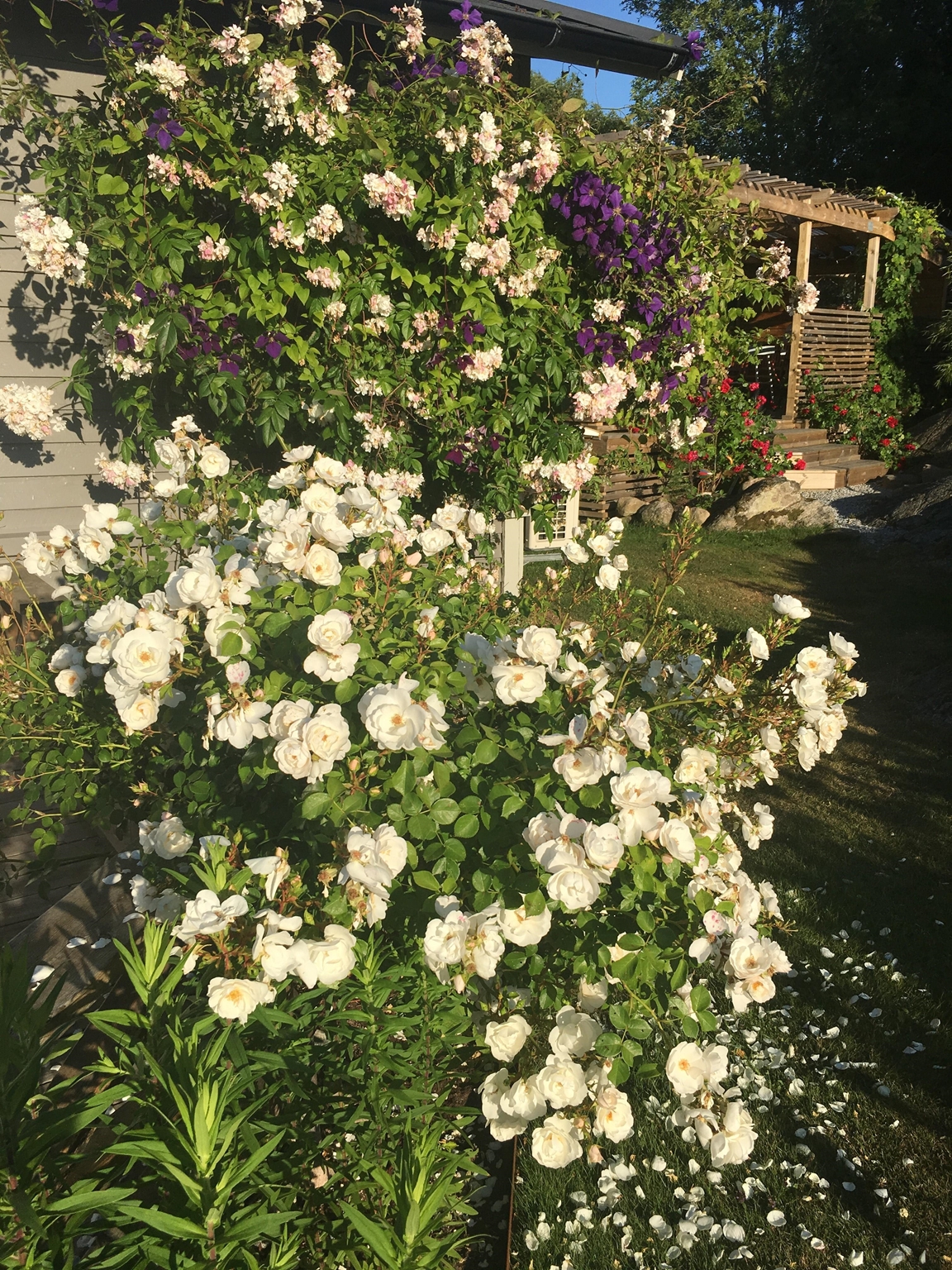 Vi försöker utnyttja den klippiga trädgården för att skapa de olika "världarna" och det är ett förstås ett pågående arbete. Vi har också en stor Dahliarabatt där färgsprakandet är viktigare än att veta vad alla sorter heter, dock är det tveksamt om den kommer blomma redan den 3 juli.
