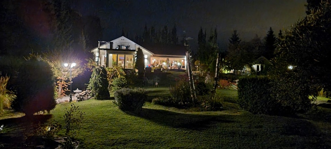 Kör från Umeå, förbi flygplatsen (ca 6 km) mot Holmsund/ Obbola. 800 m efter Bergöbron, ligger vår trädgård på höger sida bakom det röda ljudplanket.
