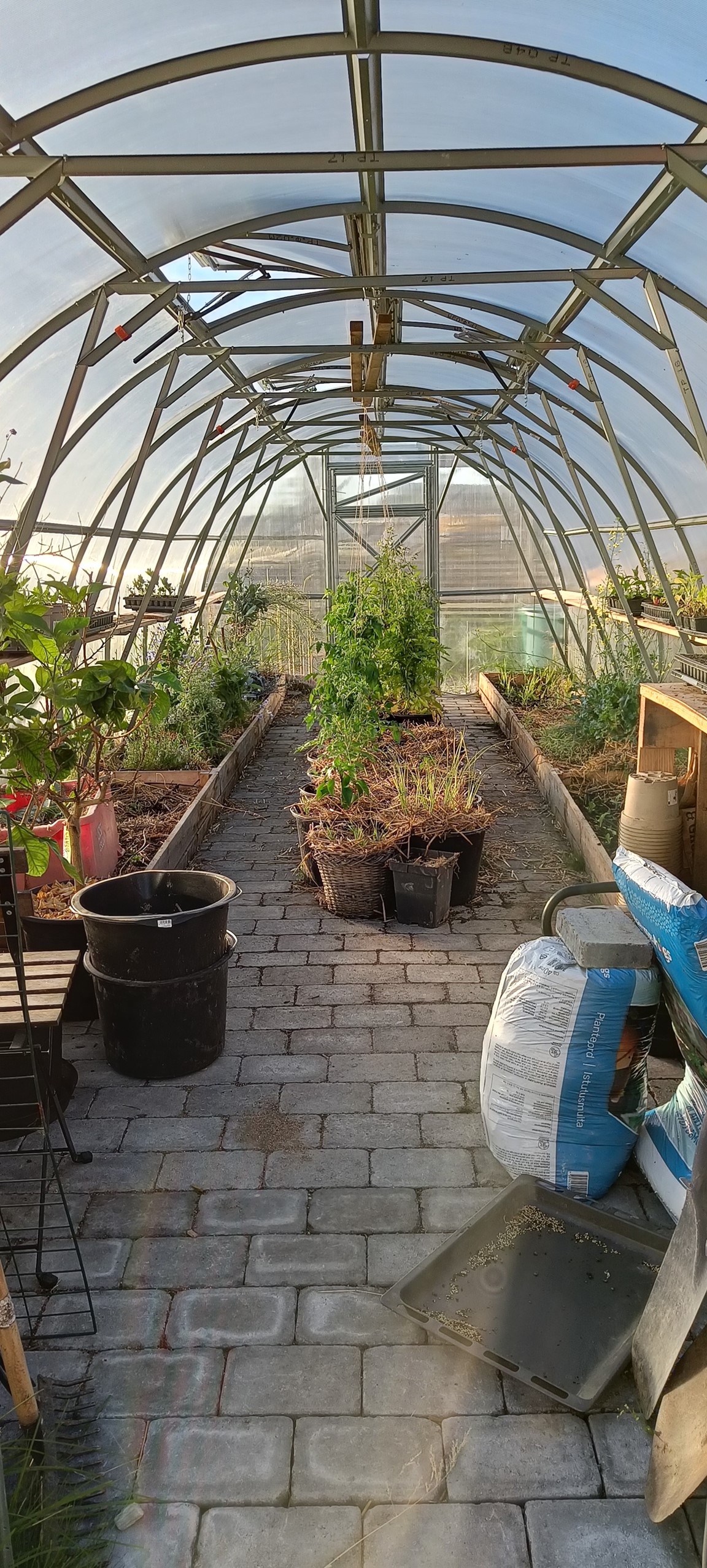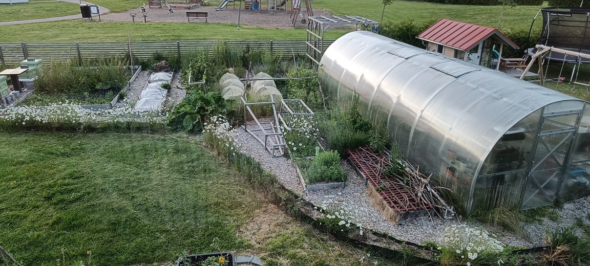 Sen höst 2018 flyttade vi hit, till en villa med en gräsmattetomt på 1100 kvm. Sen dess har vi byggt staket, anlagt en odlingsdel på ca 130-150 kvm, byggt ett tunnelväxthus från grohus på 24 kvm, påbörjat en rabatt på ca 200kvm, skaffat bin, planterat bärbuskar och träd. Framåt har vi planer på fullfölja den stora rabatten på ca 200kvm, stenlagda sittplatser, kanske en damm, kanske en eldplats, kanske en stor del med bärbuskar, men vi får se vad som hinns med i vardagen med barn, jobb och allt annat. 🤗