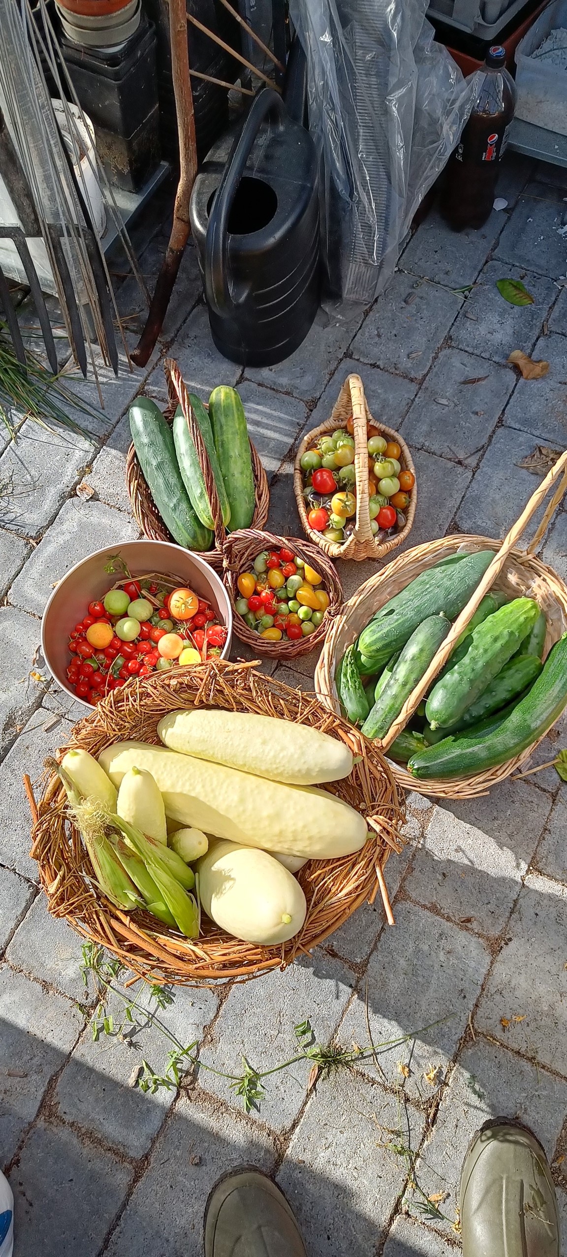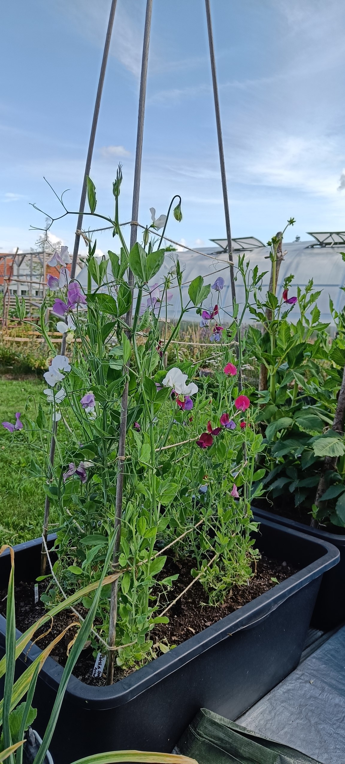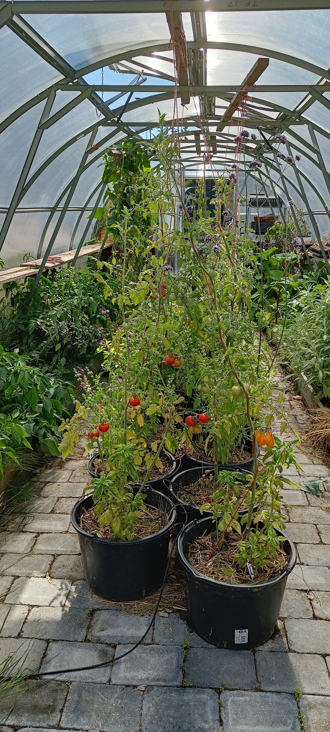 I stort sett allt är odlat från frö/lök/knöl. Vi täckodlar och använder egen kompost. Nu har vi fruktträd, bärbuskar, massa olika grönsaker på friland, i pallkragar och i växthus blandat med sommarblommor, perenner och rosor. 🌱🍅🌶️🥕🥬🫑🫛🥦🍏🥒🫐🧄🫘🧅🌻🌹🌳 I trädgården har vi även bikupor. 🐝🍯Vi försöker att samla vatten och återanvända vatten till bevattning på smarta sätt. 💧☔
