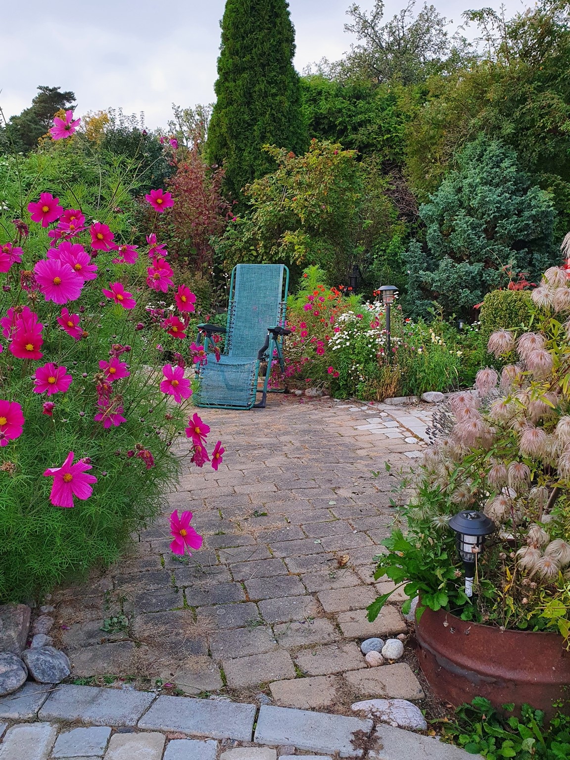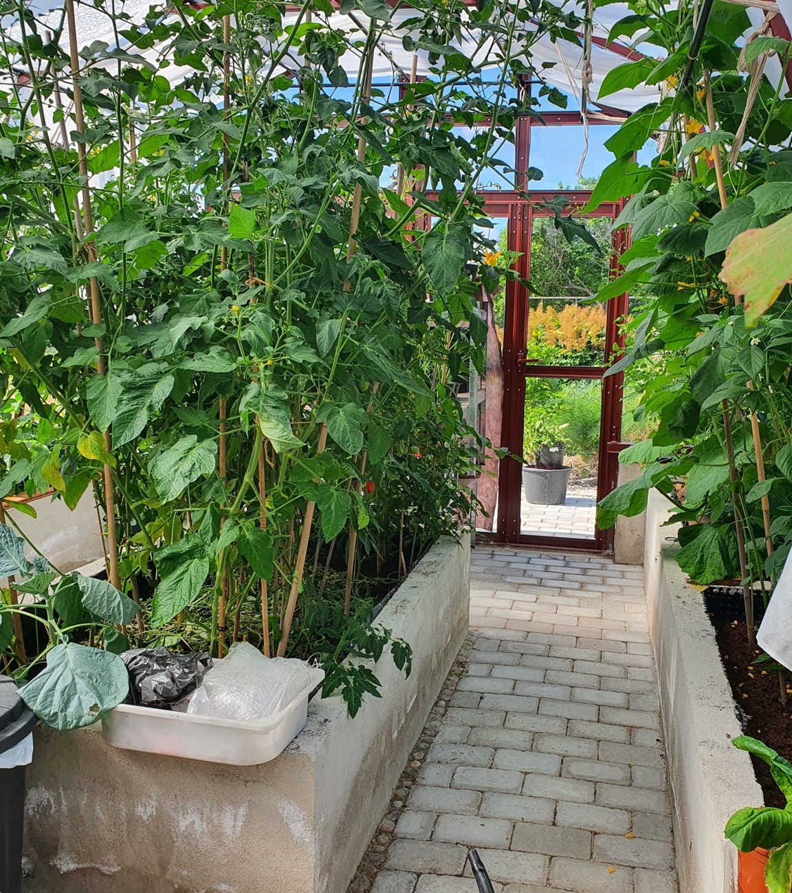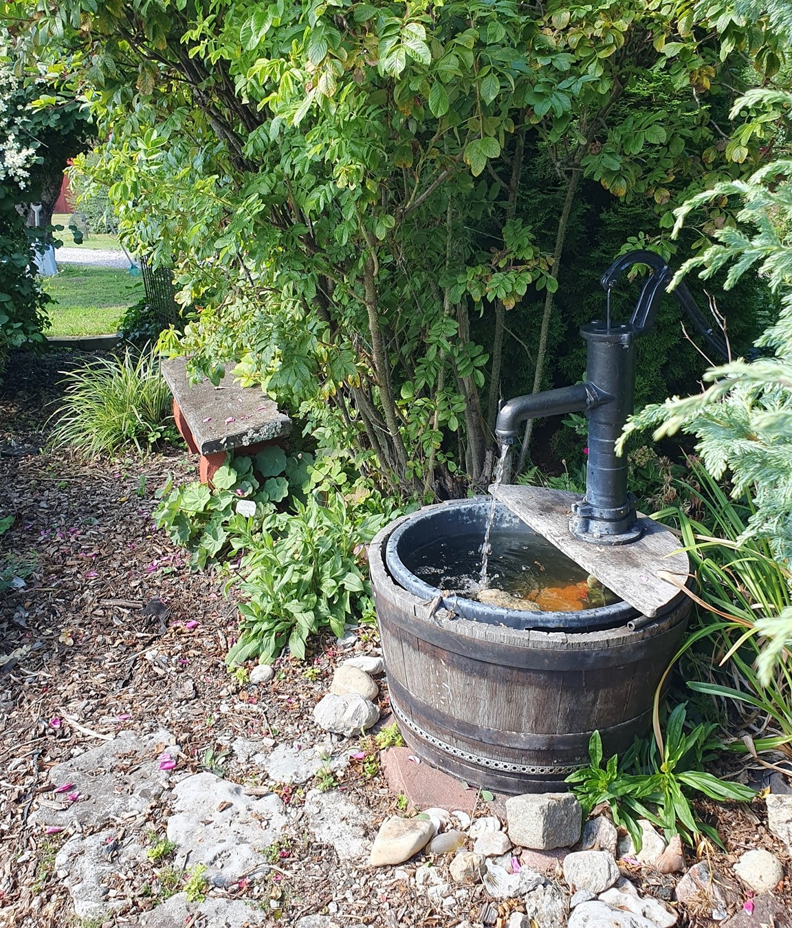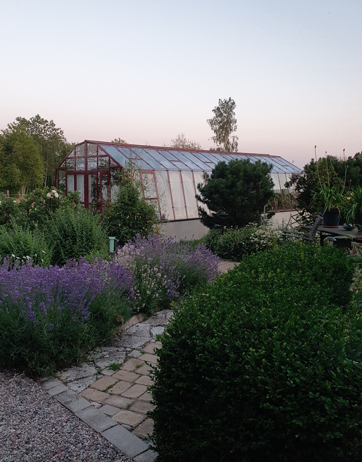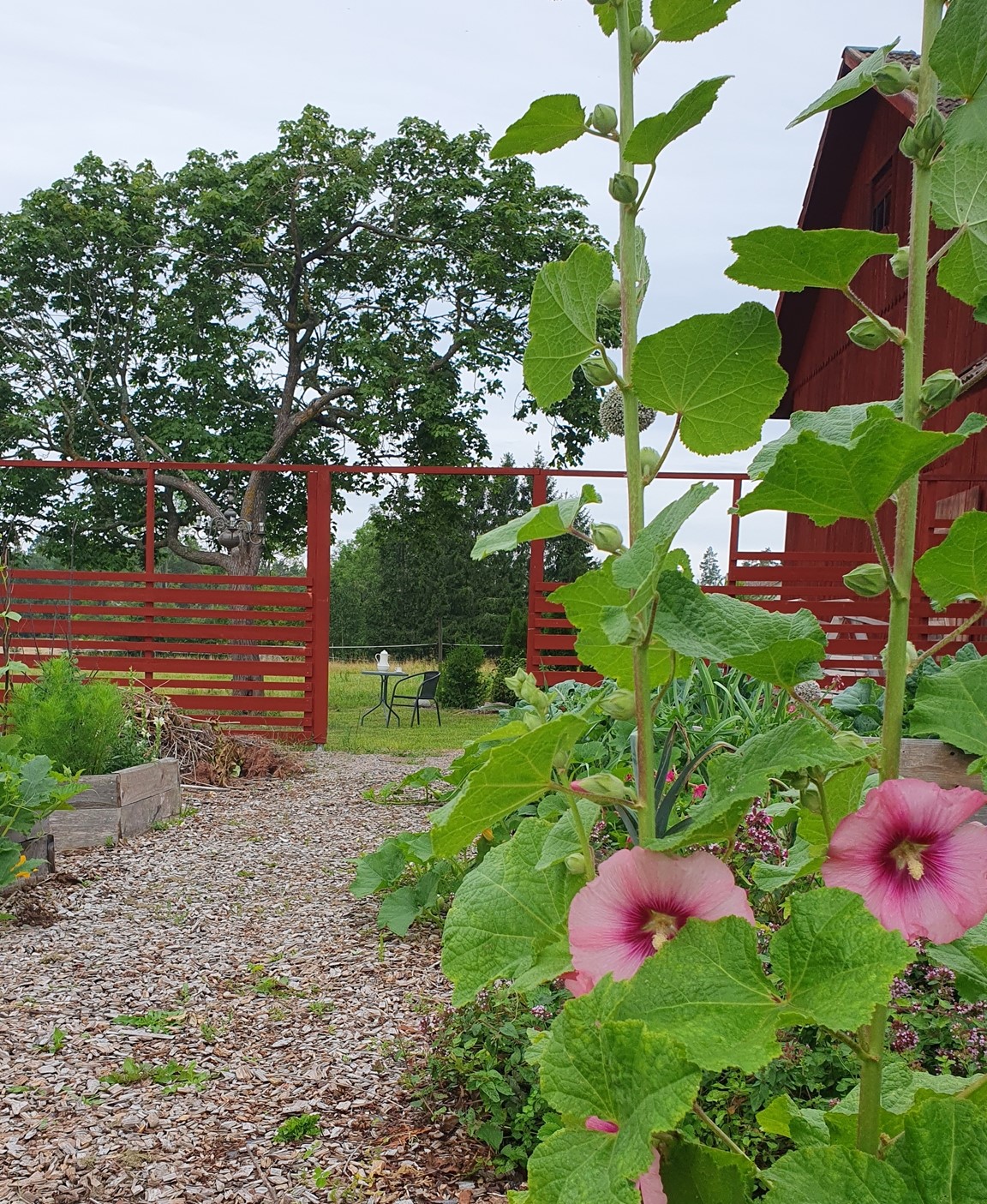 Trädgården ligger på vår lantgård i den gamla byn Vi. Det är en inspirerande trädgård på många olika sätt. Trädgården har många olika rum och sittplatser samt ett större växthus. Det finns ettåriga blommor och grönsaker blandat med perenner och mycket vintergrönt samt gamla och nya fruktträd. På gården finns Galleri Knyttet, hantverk, loppis, fika med hembakt, plantor till försäljning och toalett. Hundar är välkomna. Alla röda hus tillhör gården. Ett bad finns på Viboö.