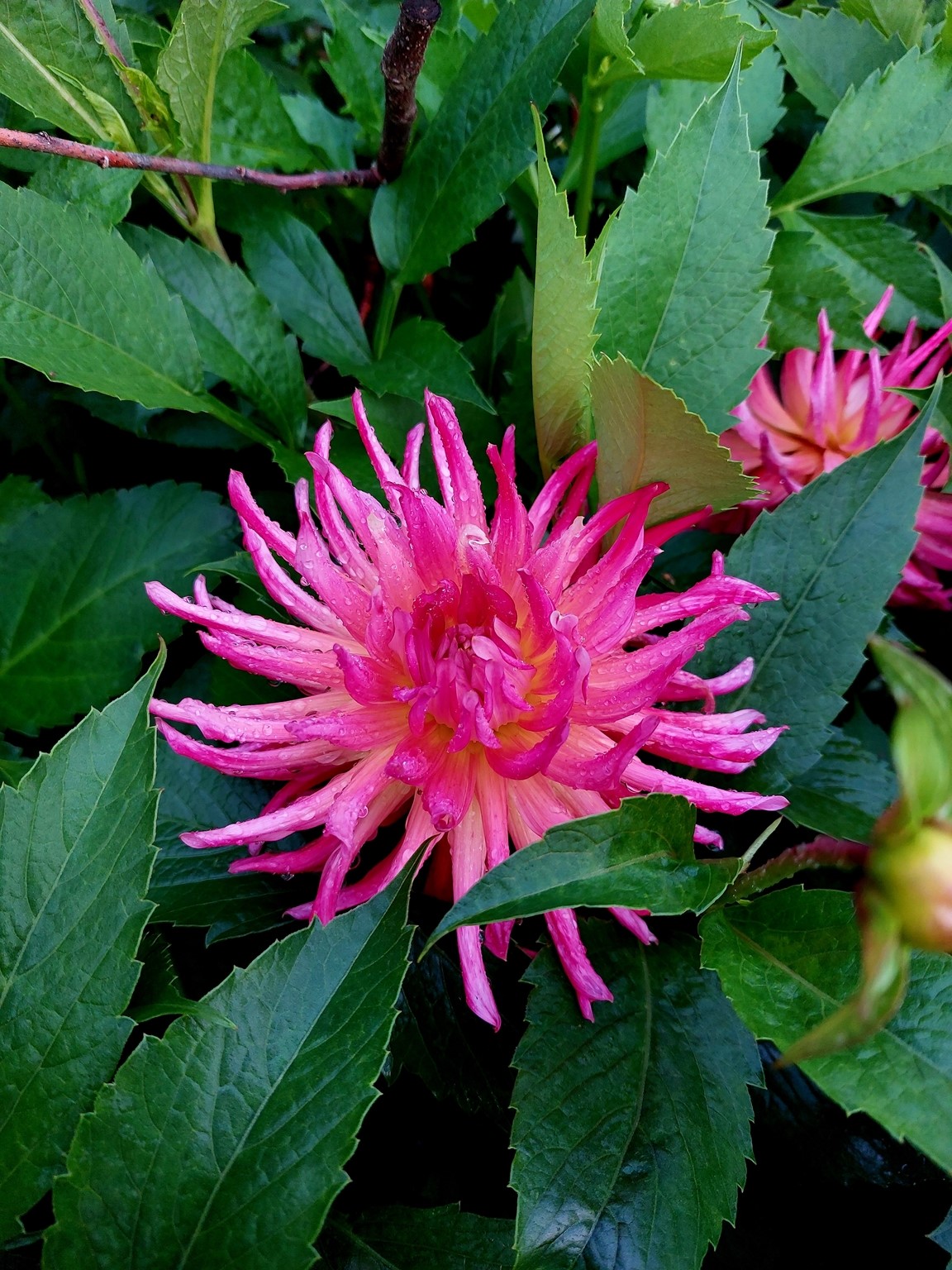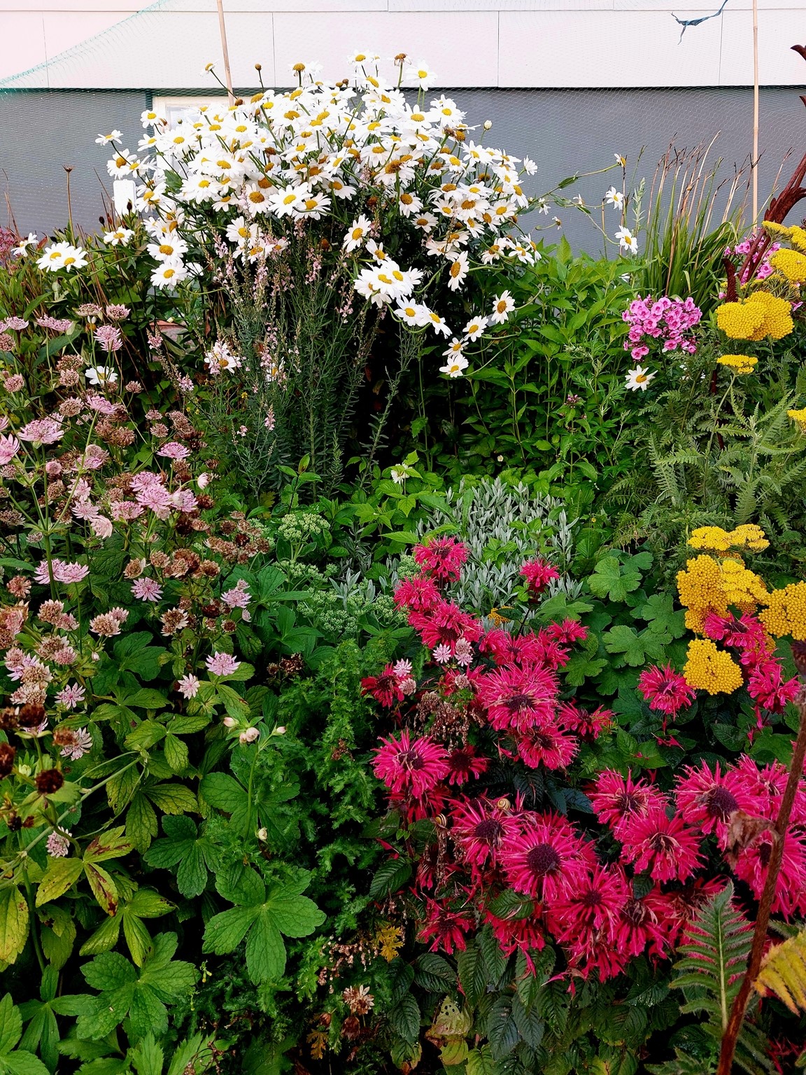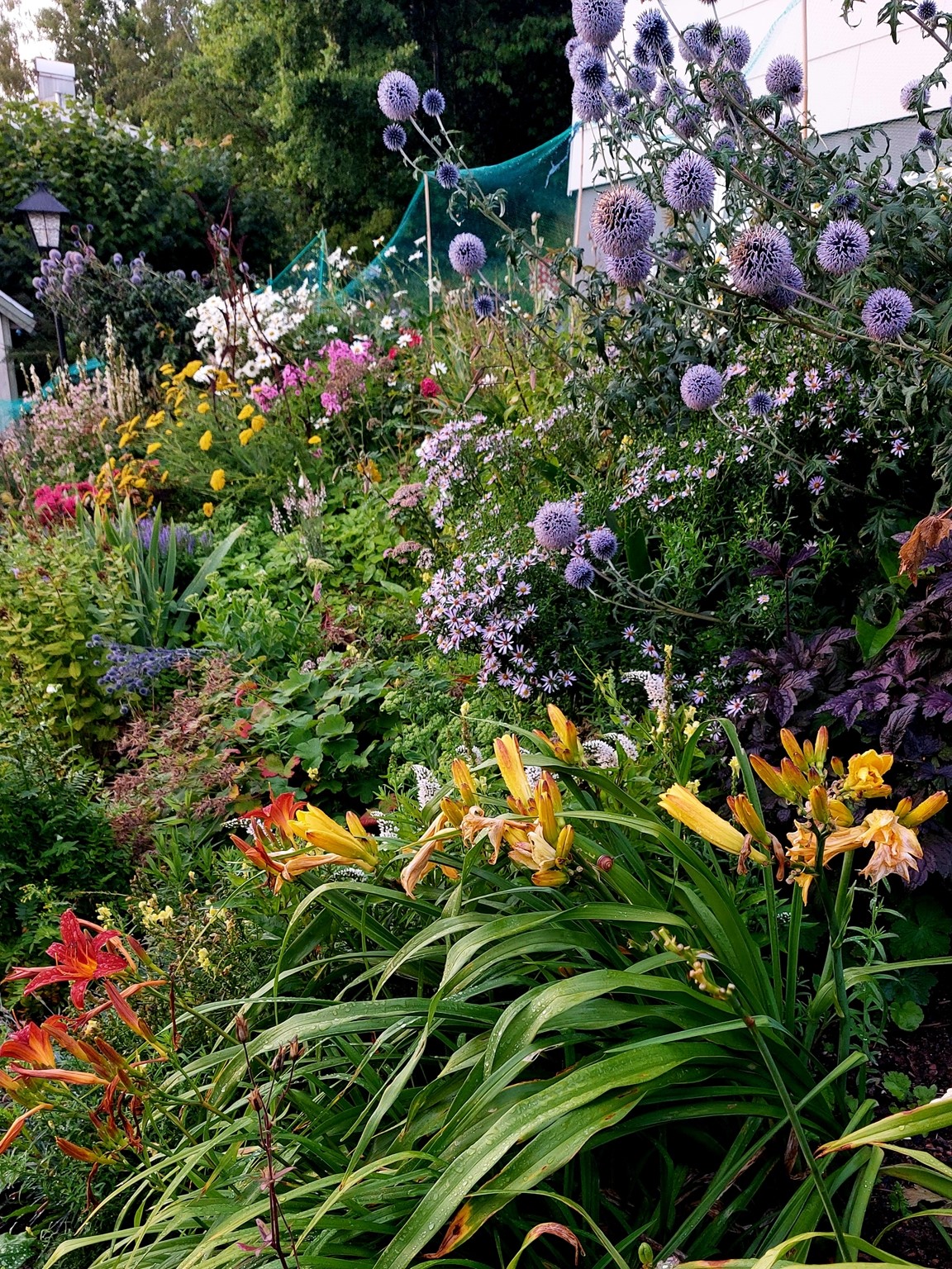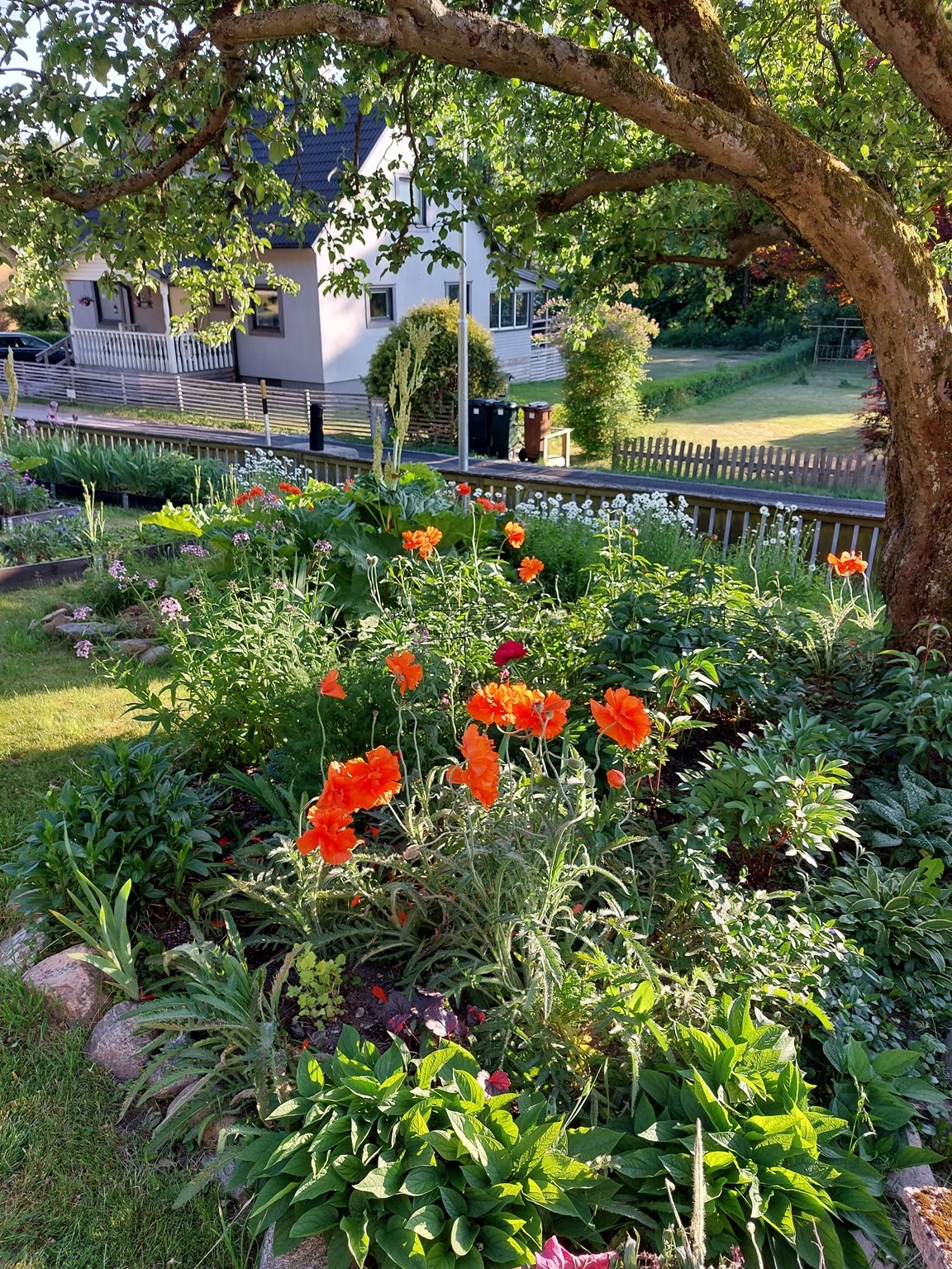 Trädgården är i etage med trappor och slänter och gränsar till skogen. Totala ytan är 1500m3. Övre delen är skog och ett projekt som inte är påbörjat. Mellersta och nedre delen består av rabatter med många perenner och sommarblommor. Finns även hallon, blåbär, vinbär, krusbär och rabarber. Trädgården är ett pågående projekt där det händer ngt nytt varje säsong.