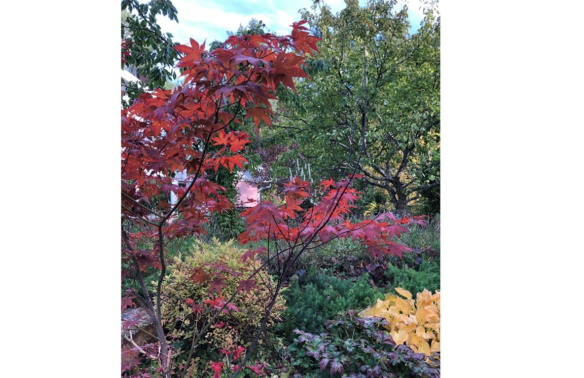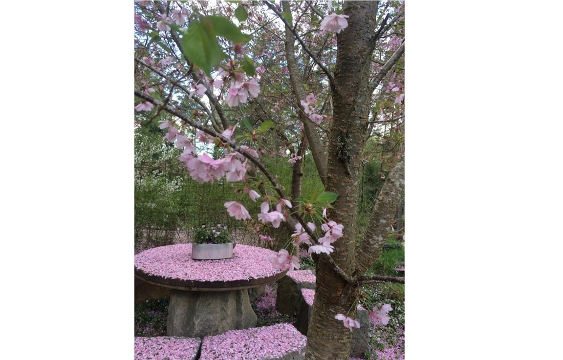 I de mindre rummen växer bl. a. körsbärsträd, pioner, funkior, azaleor, hortensior och olika barrväxter.